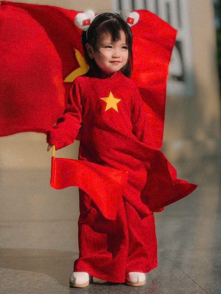 Hoà chung không khí cờ đỏ sao vàng em lên áo dài cờ đỏ cho các con diện ạ