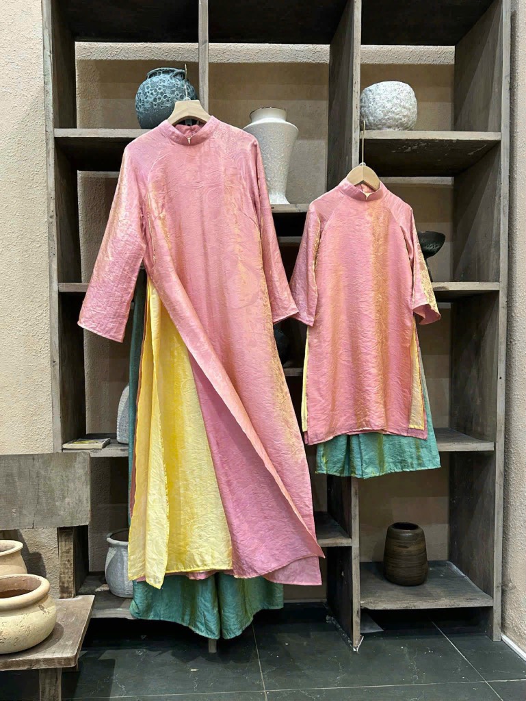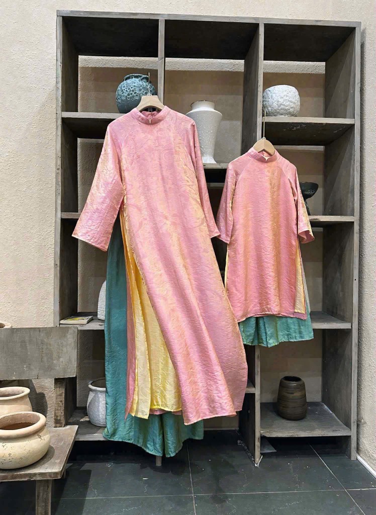 Áo dài tơ 4 tà giá ngoài thị trường cũng trên 1 triệu. Nay cả mẹ và bé giá tiền trămmmm thì phải chốt luôn ạaaaa