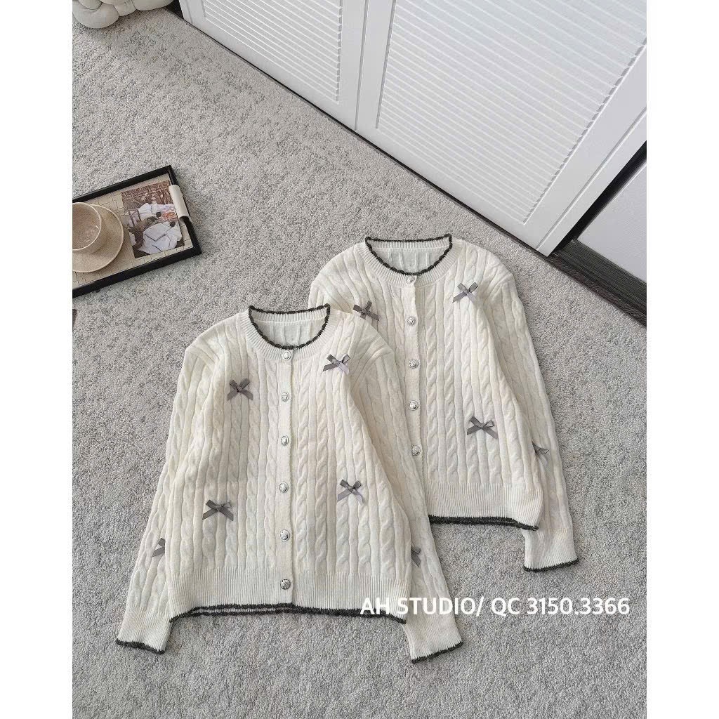 ÁO LEN CARDIGAN MÀU KEM ĐÍNH NƠ NỮ THU ĐÔNG