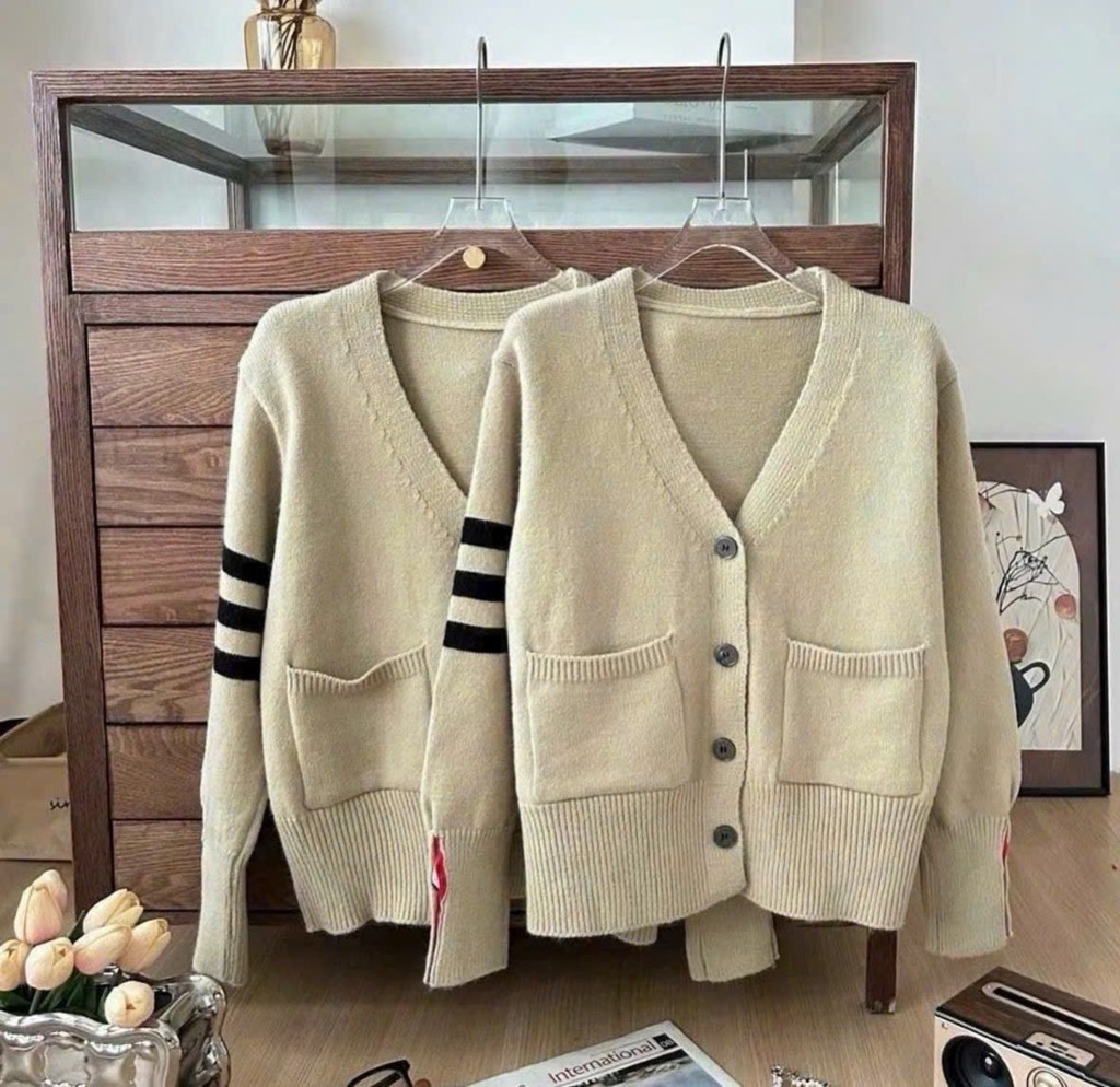 ÁO LEN CARDIGAN TAY SỌC MÀU BE