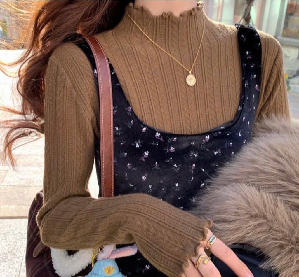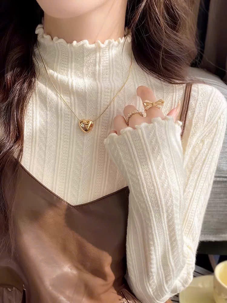 Thiết kế cổ cao nhẹ nhàng, nữ tính, viền gợn sóng xinh xắn.
