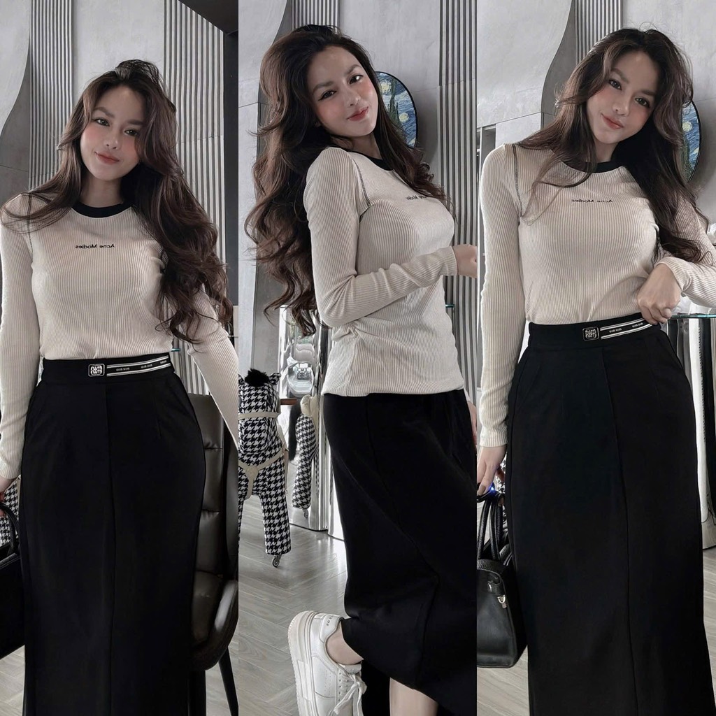• Chất len tăm co giãn tốt, thoáng và mềm mịn, mặc ôm dáng cực xinh.