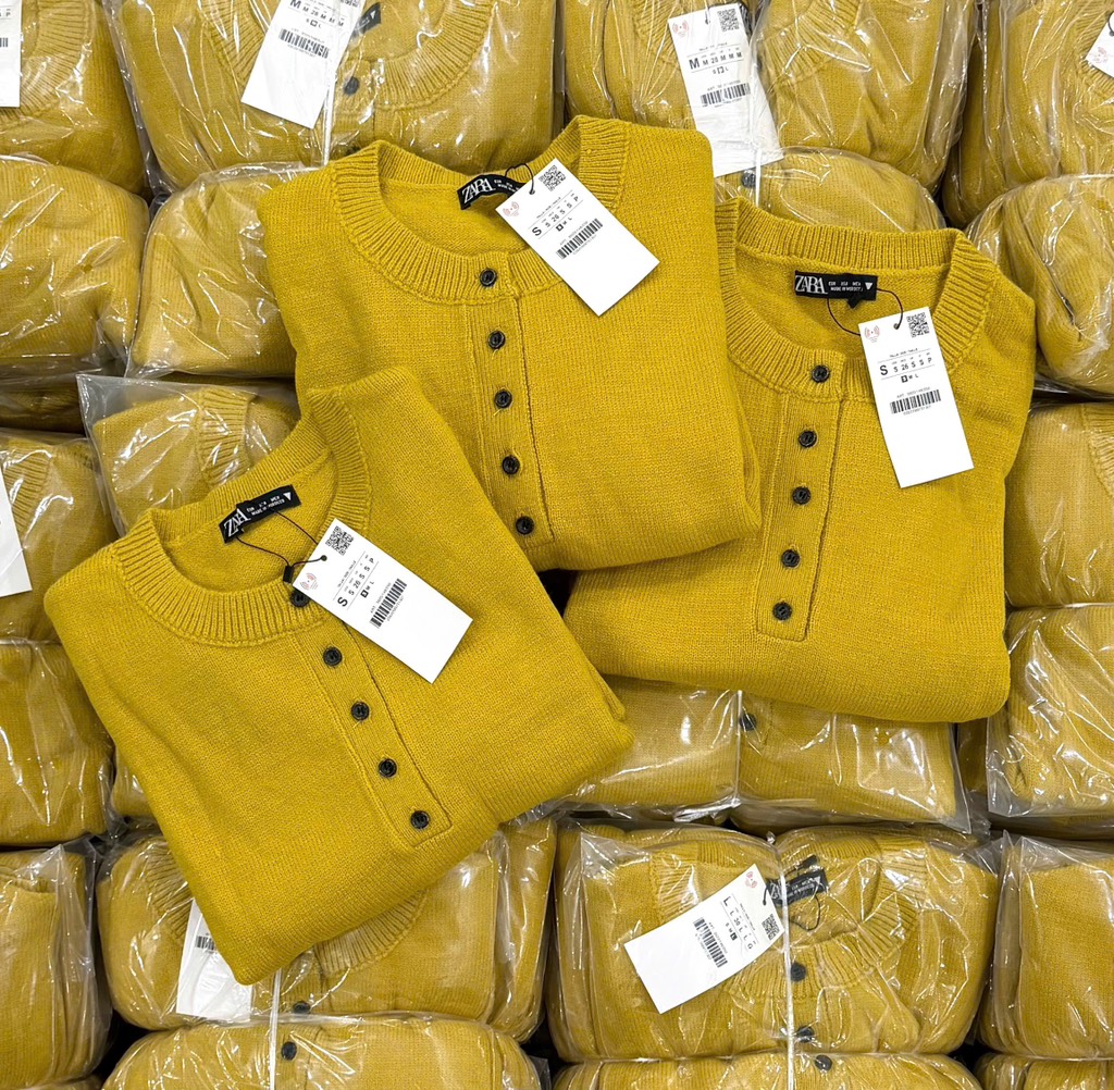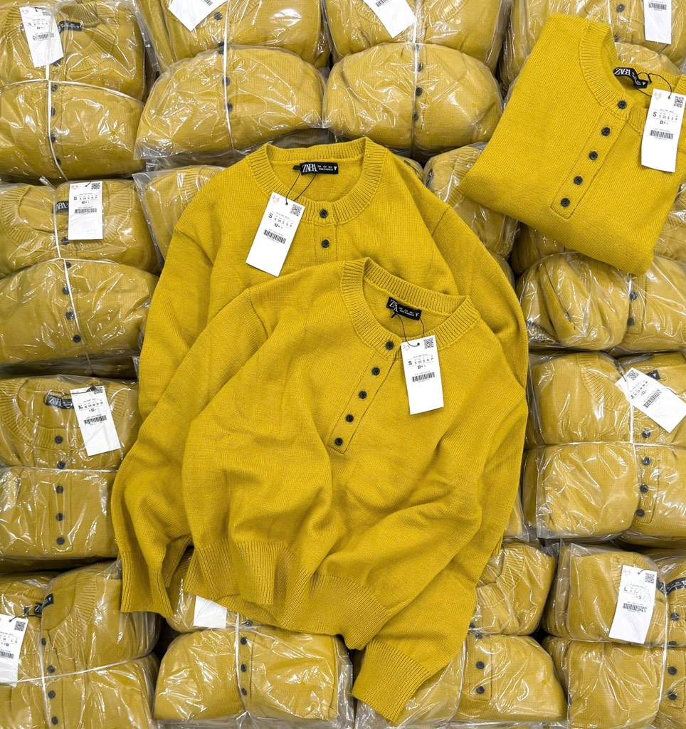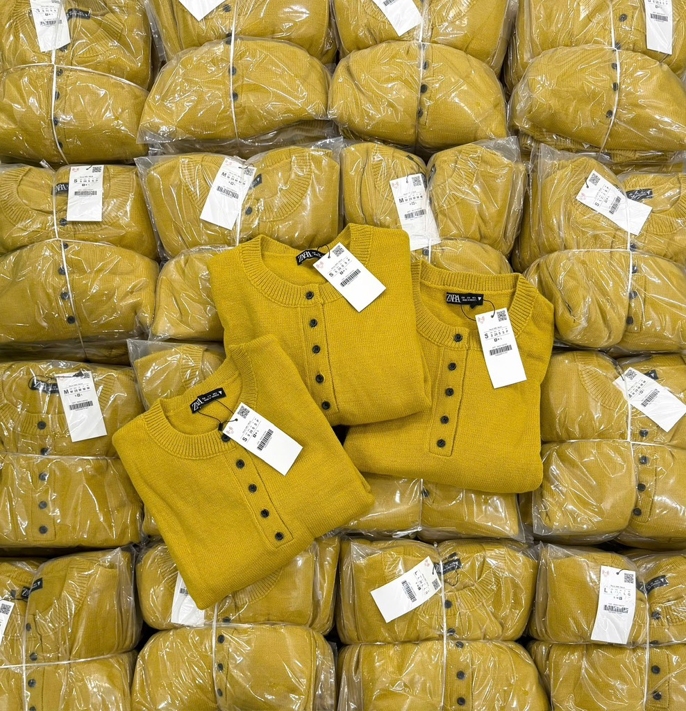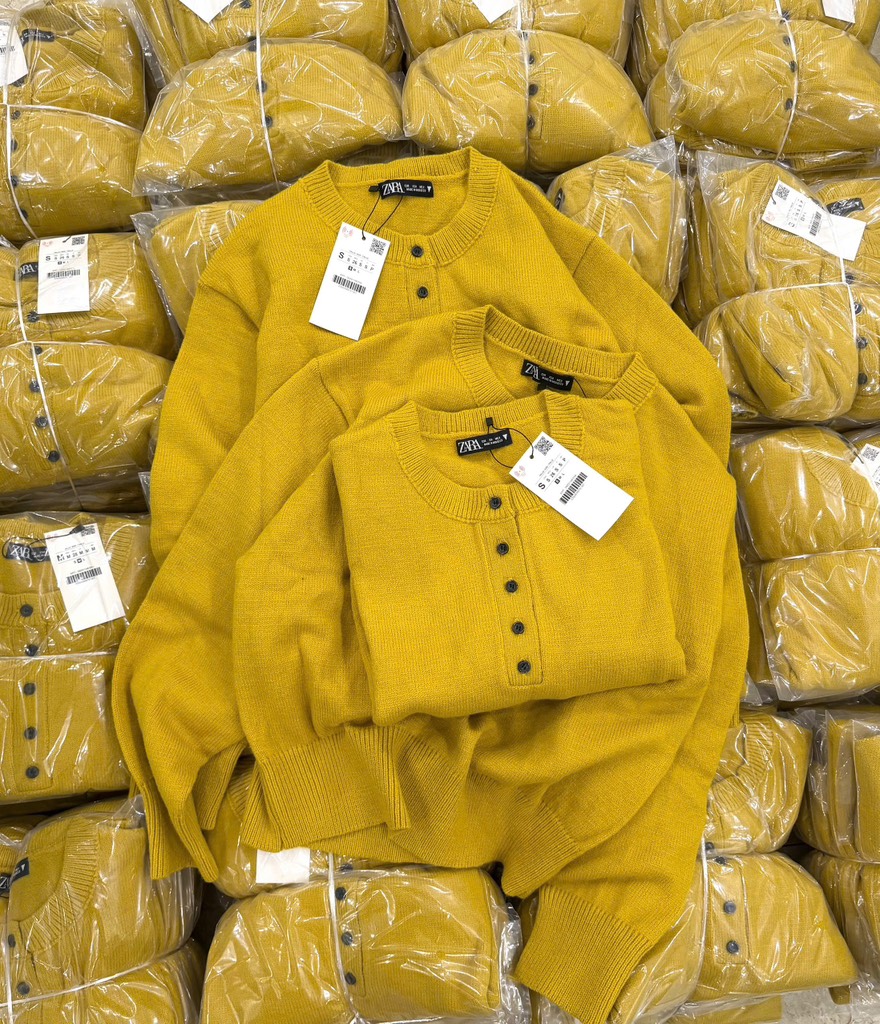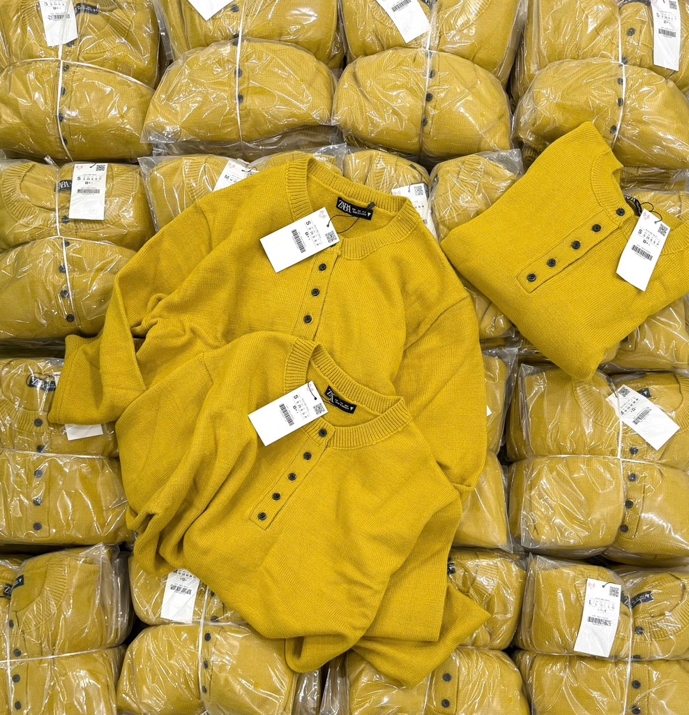 ÁO LEN VÀNG KHUY ĐEN DÀI TAY NỮ THU ĐÔNG