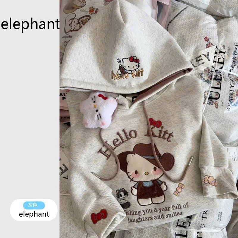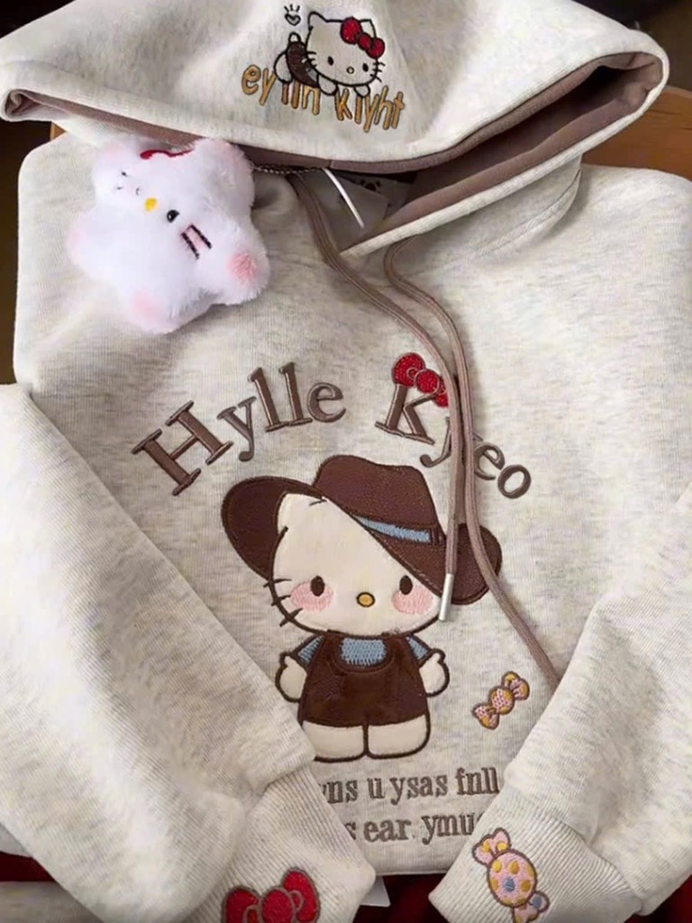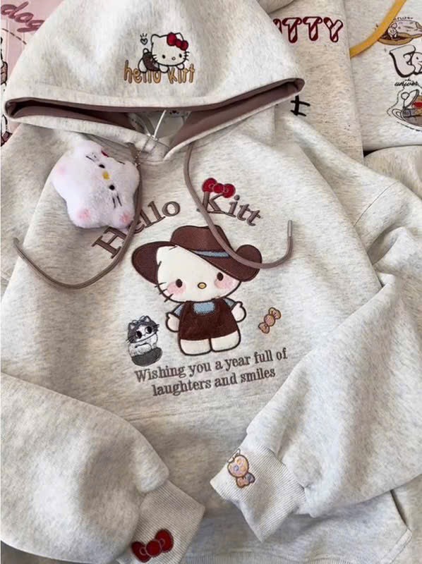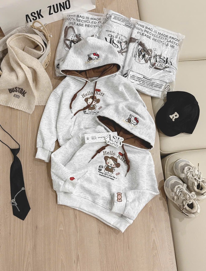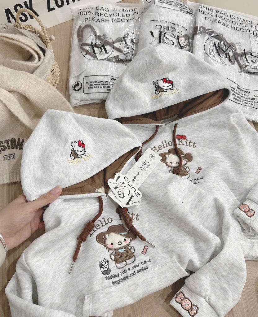 ✨ ÁO NỈ 2 DA THÊU KITTY – MŨ 2 LỚP SIÊU XINH ✨