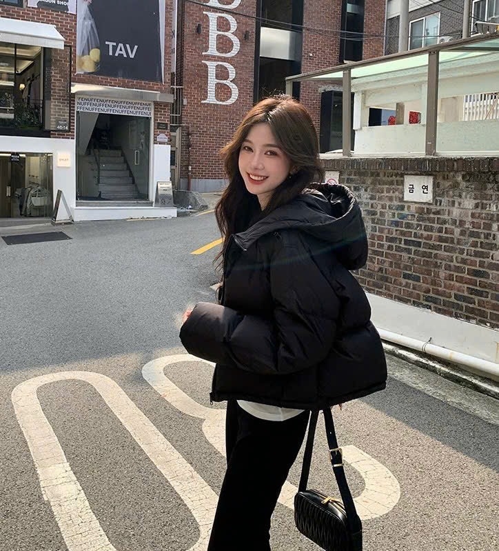Lên dáng cực gọn, ấm và nhẹ hều nha. Áo có mũ
