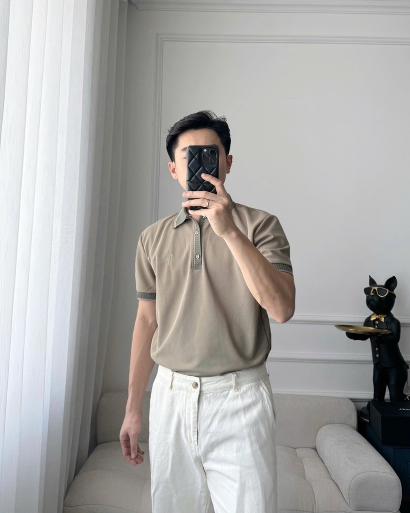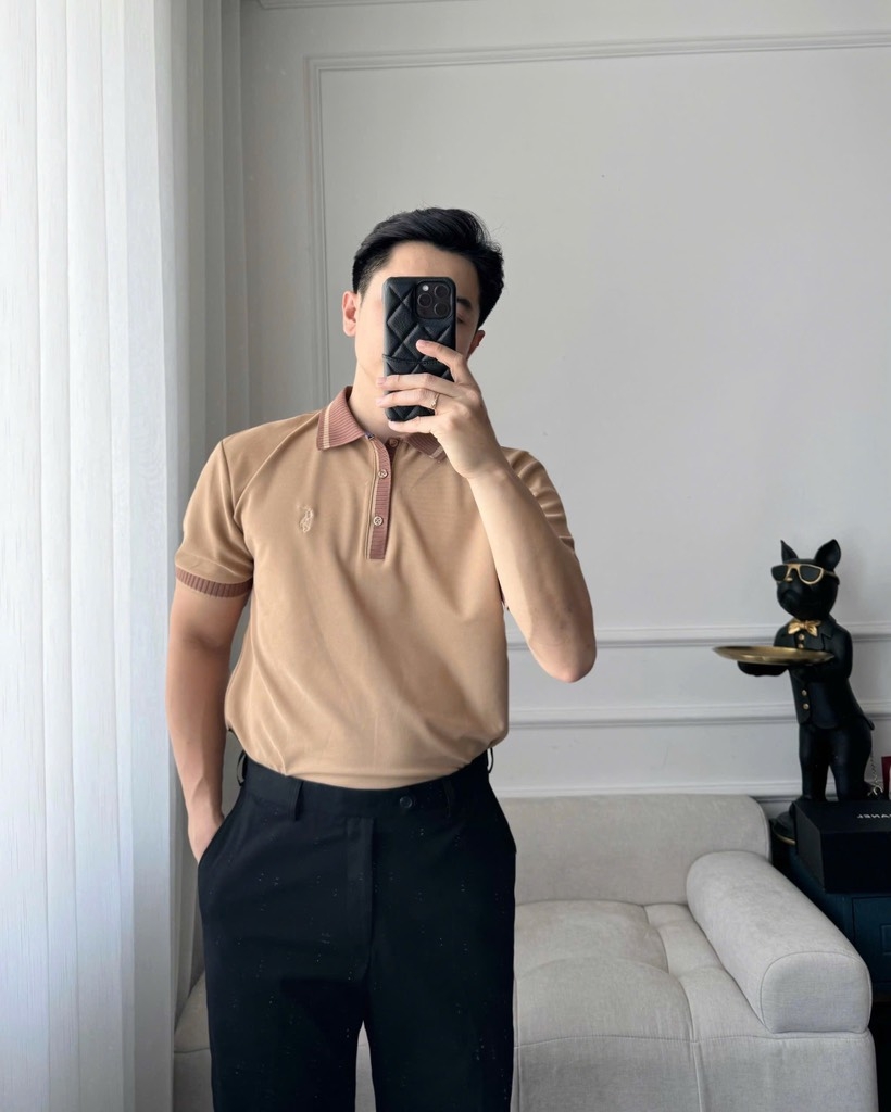 Áo polo nam mùa xuân hè 2025 với thiết kế áo kẻ siu đẹp, logo thêu nổi, cúc dự phòng sịn sò, chất mềm mịn.