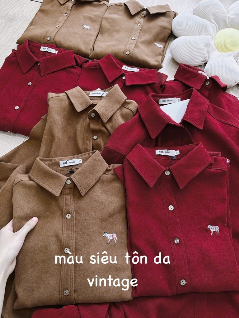 ☘️ ÁO SƠ MI NHUNG TĂM THÊU NGỰA🌺