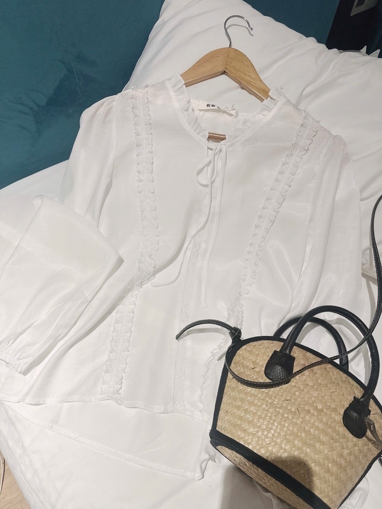 🌿Chiếc sơ mi nhẹ nhàng, điểm ren tinh tế tạo cảm giác nữ tính và vintage.