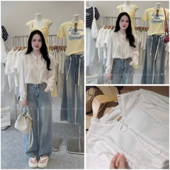 🌿 Sơ mi trắng dài tay phối ren – thanh lịch mà vẫn ngọt ngào 🌿