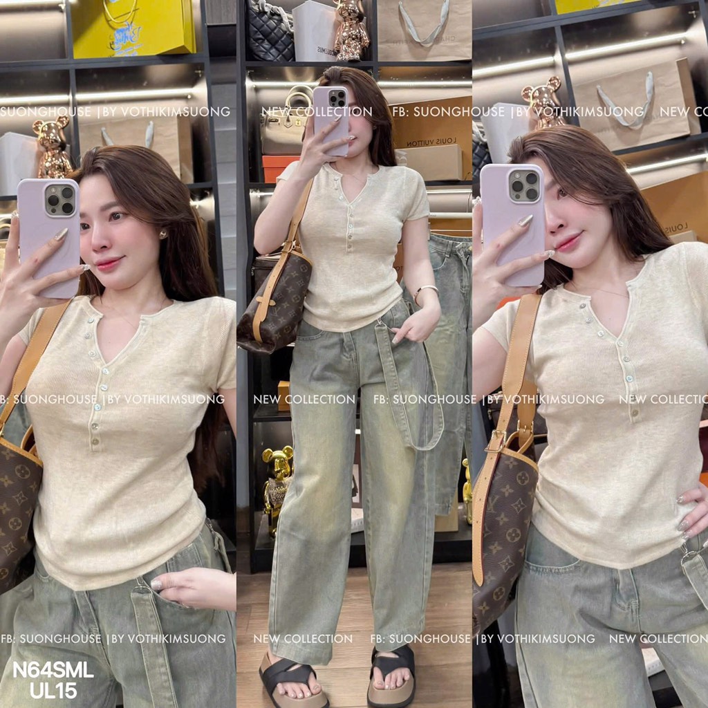 ✔️ Hàng khuy trước xinh xắn, dễ phối quần jean, short hay chân váy.