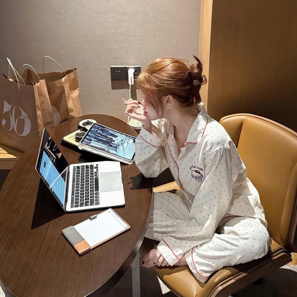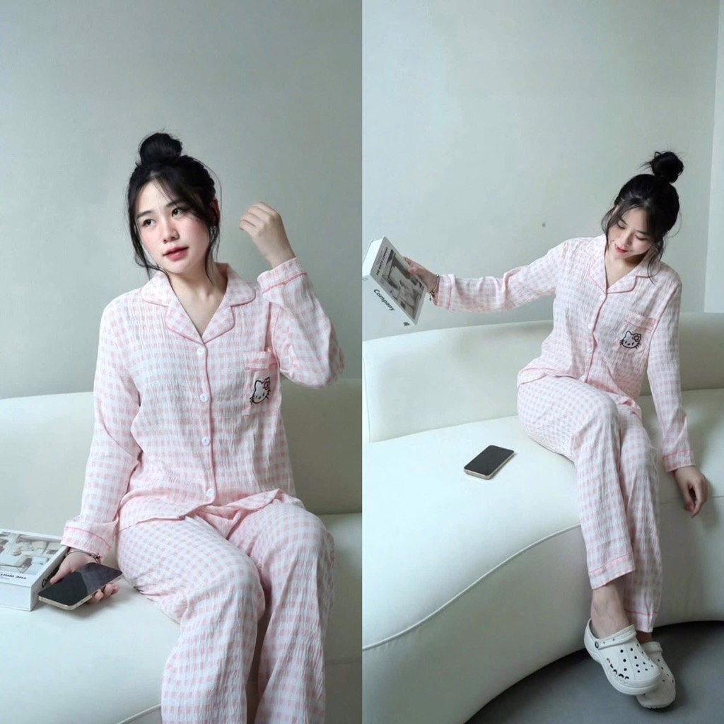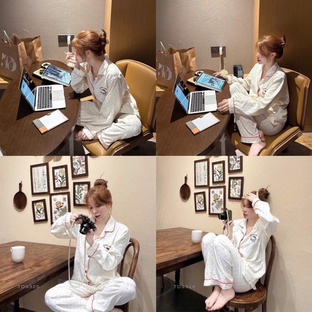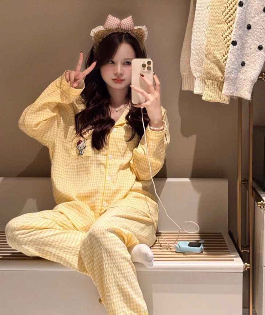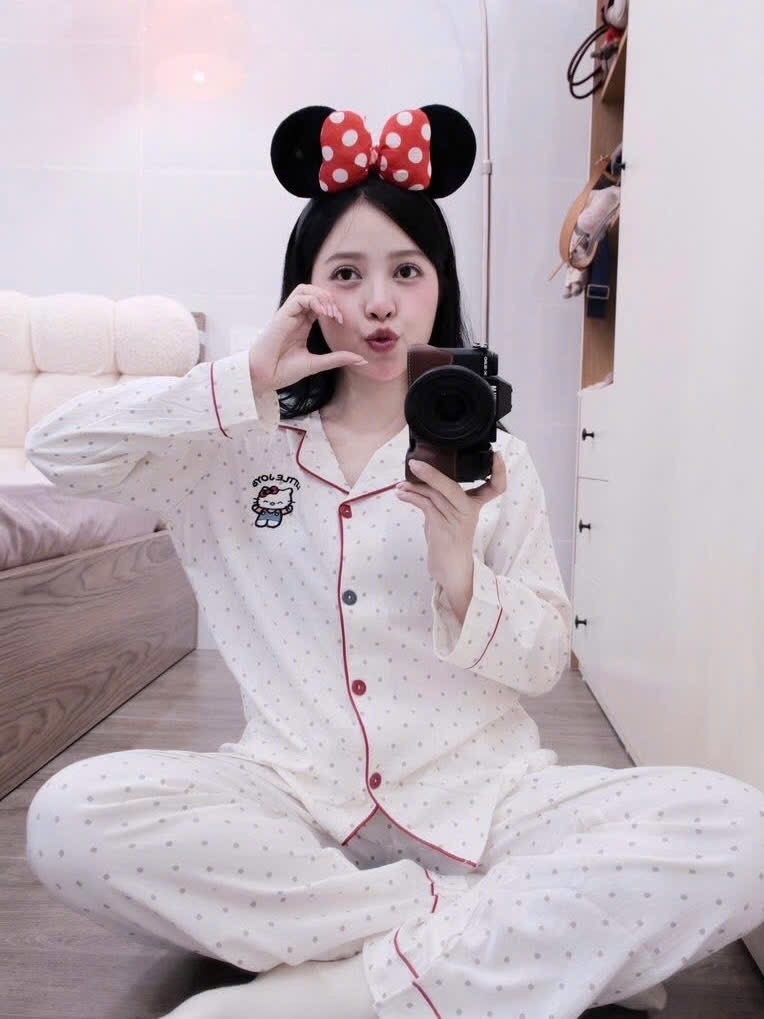 Bộ đồ ngủ Hello Kitty xinh xỉu luôn 😍 thoải mái mà vẫn cute hết nấc. Ở nhà thôi cũng thấy dễ thương rồi 🐱💕