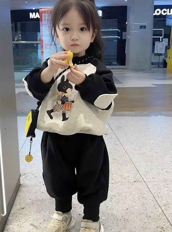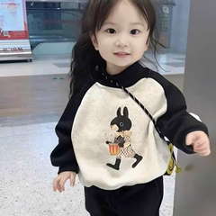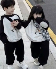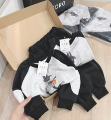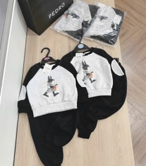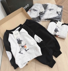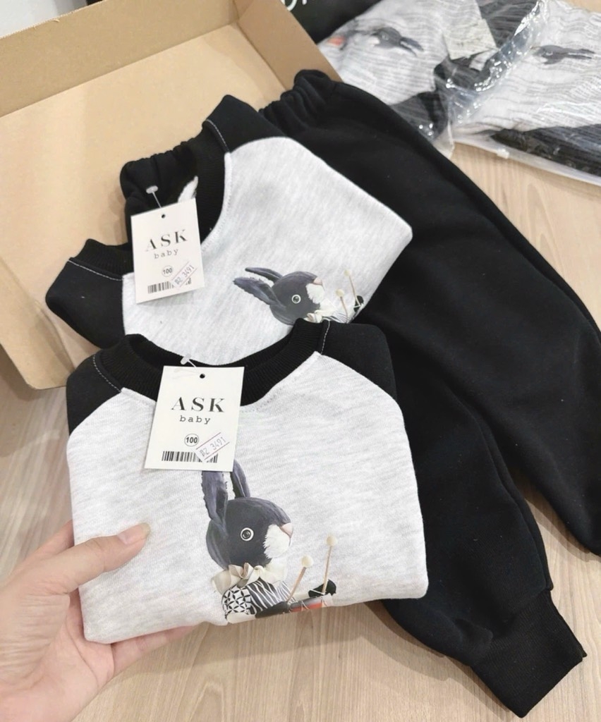 ‼️HOT KIDS : BỘ NỈ RAGLANG ĐEN GHI TÀN THỎ CHO BÉ