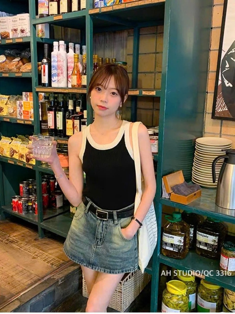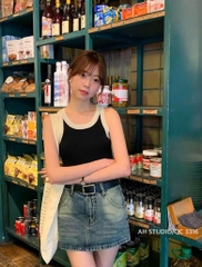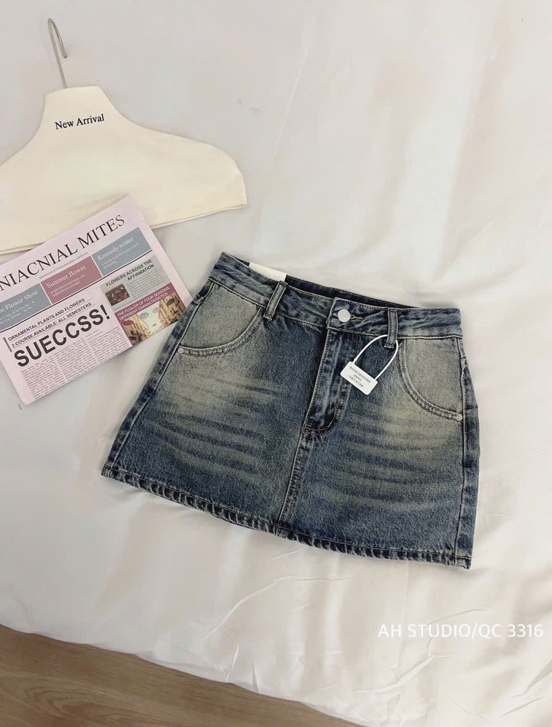 Chân váy bò đơn giản nhưng mix gì cũng xinh