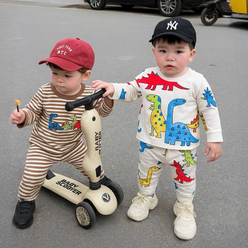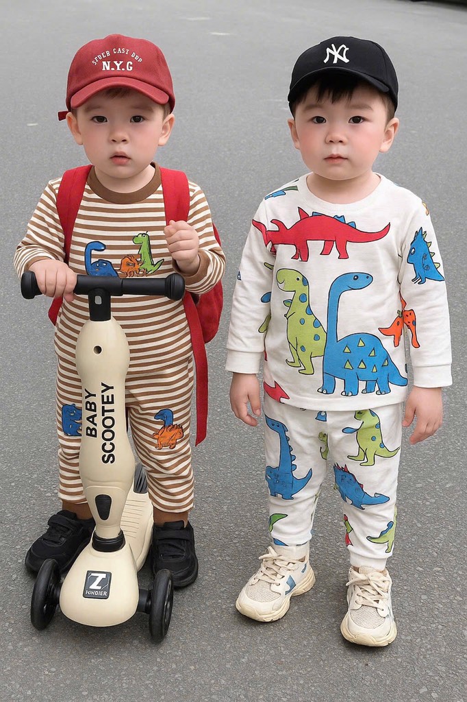 Combo 2 bộ khủng long siêu cute,hình in tràn xịn xò mix cùng hình khủng long gruuuu đáng iu xỉu