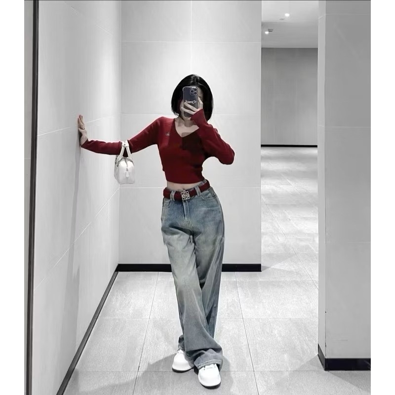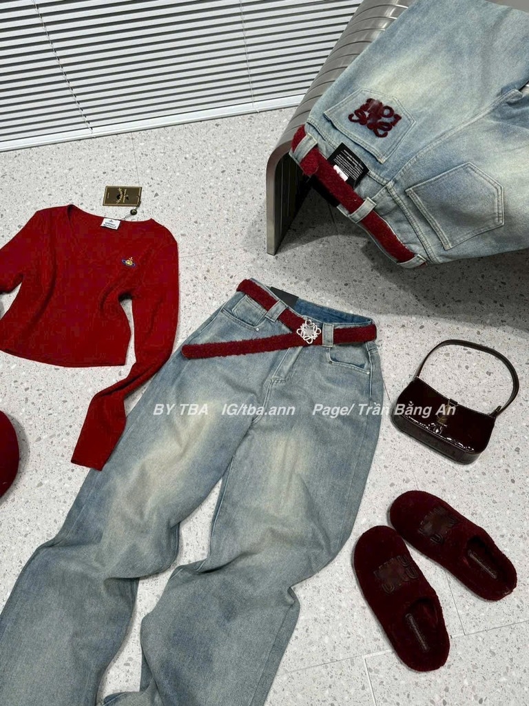 Jeans suông túi đỏ siêu xịn