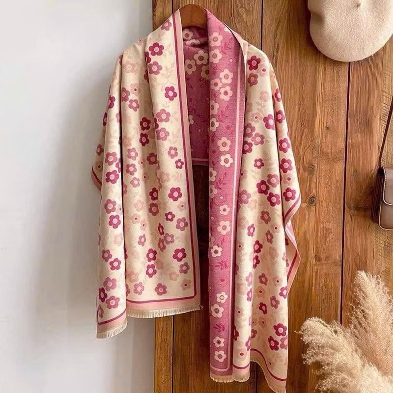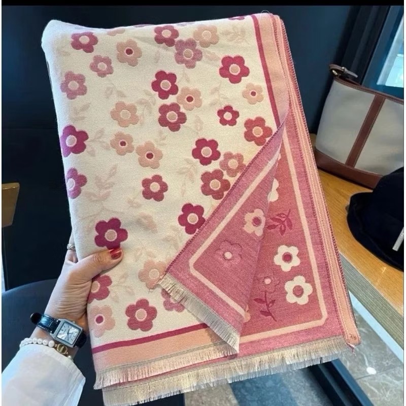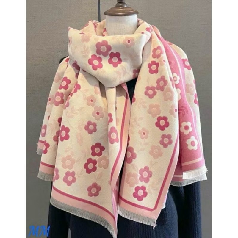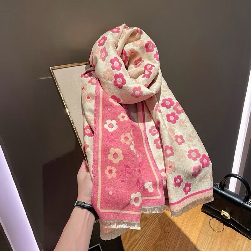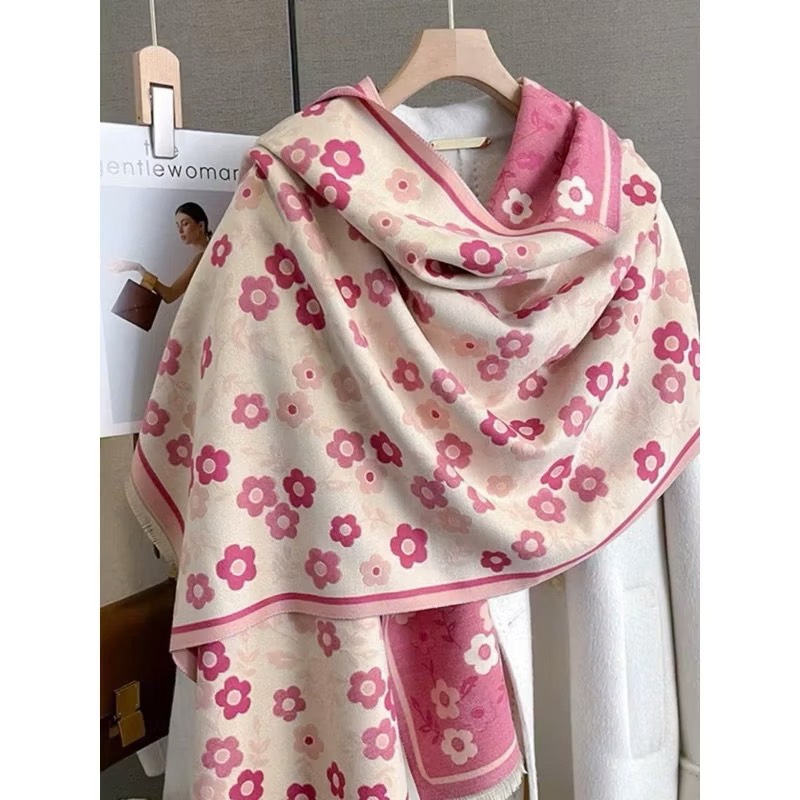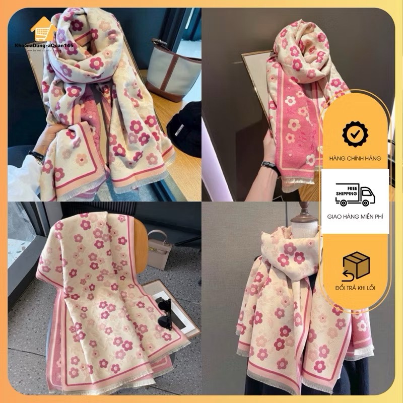 Chiếc khăn hoa anh đào làm nưa làm gió, tone hồng trẻ ra 10 tủi các chị ạ