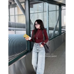 Thêu Át Cơ Đỏ Nổi Bật Cạp Cao Basic Siêu Tôn Dáng