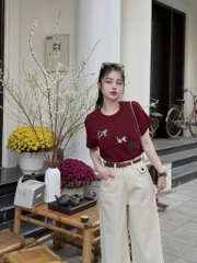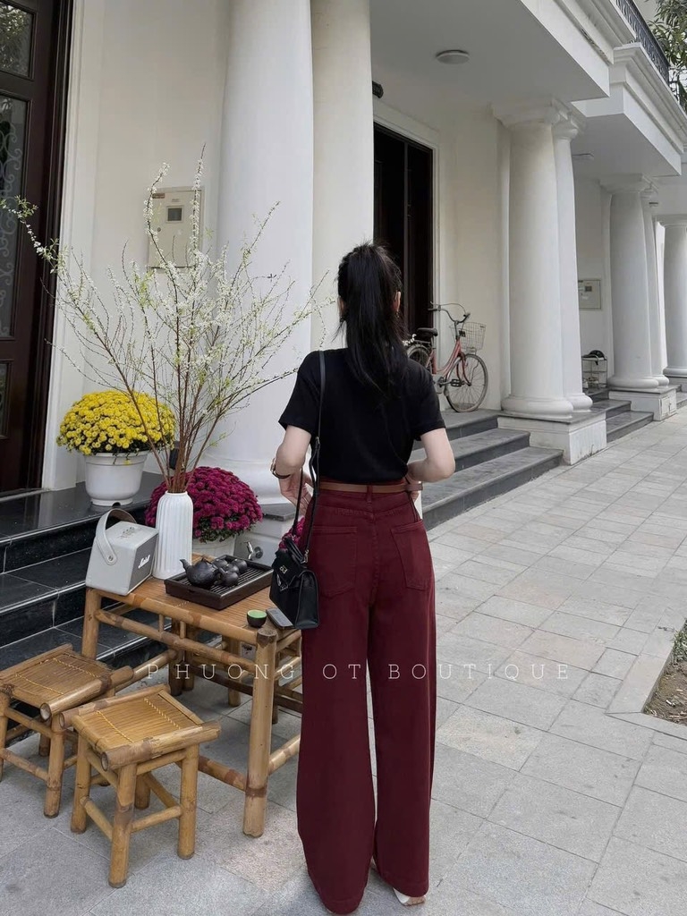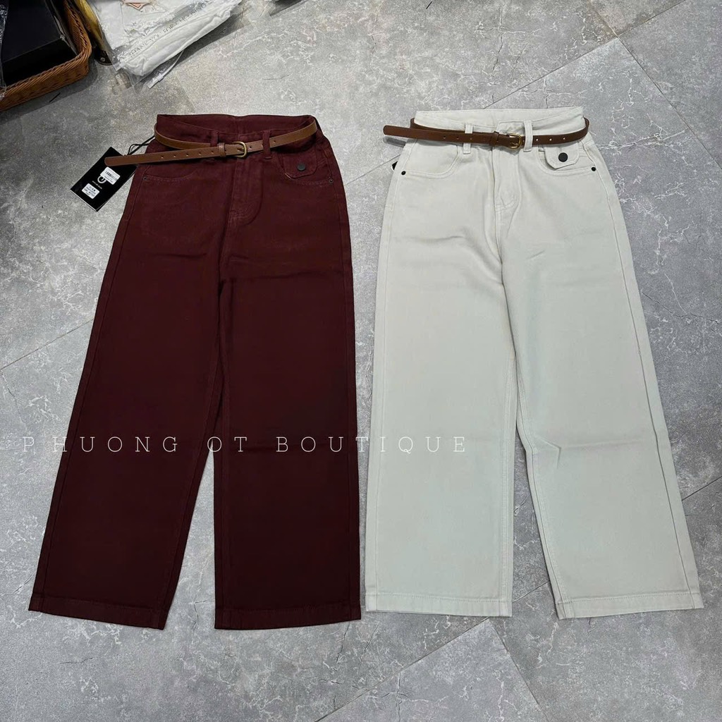 QUẦN JEAN NỮ SUÔNG ĐỎ TRẮNG KEM KÈM ĐAI 🎀
