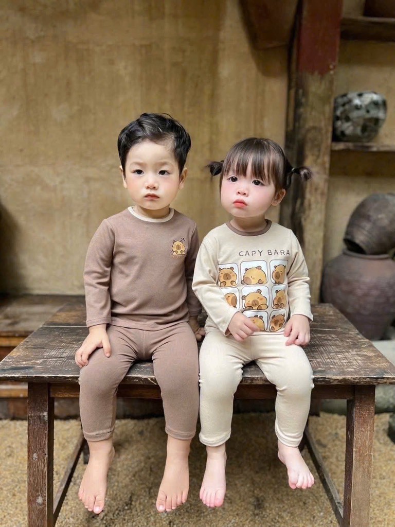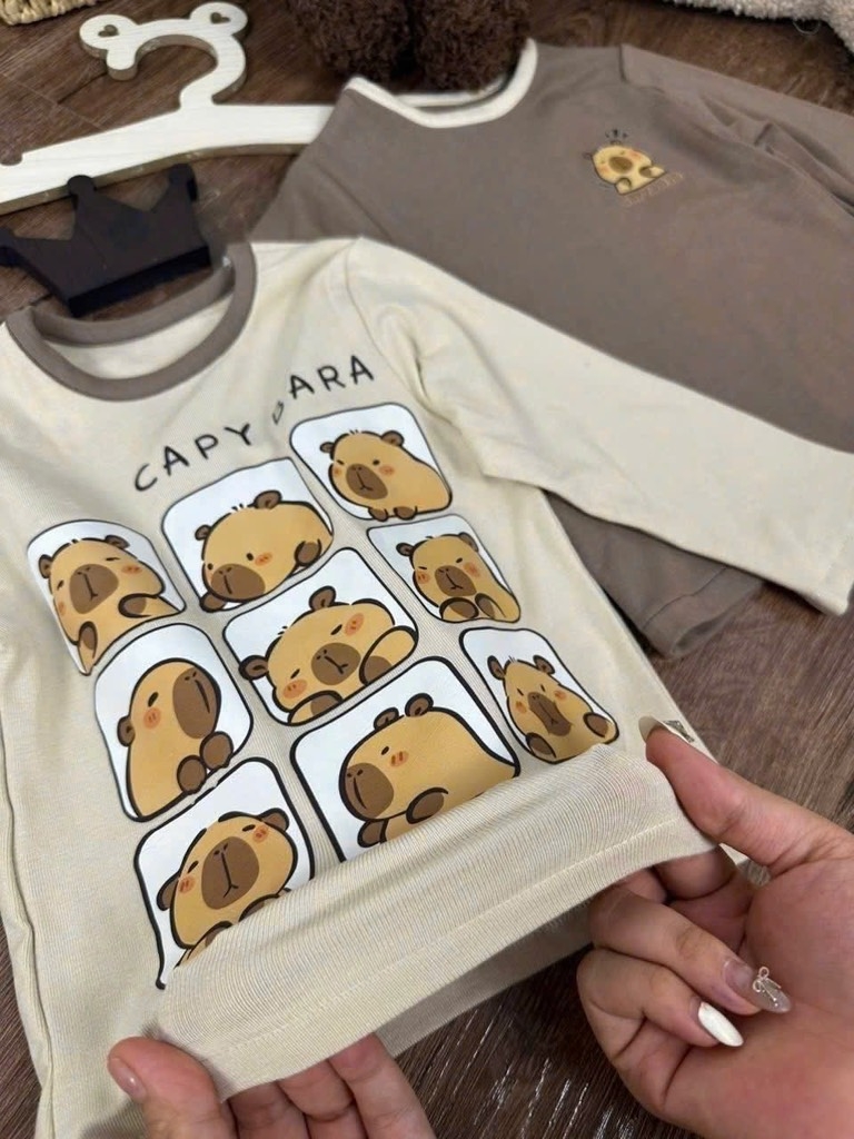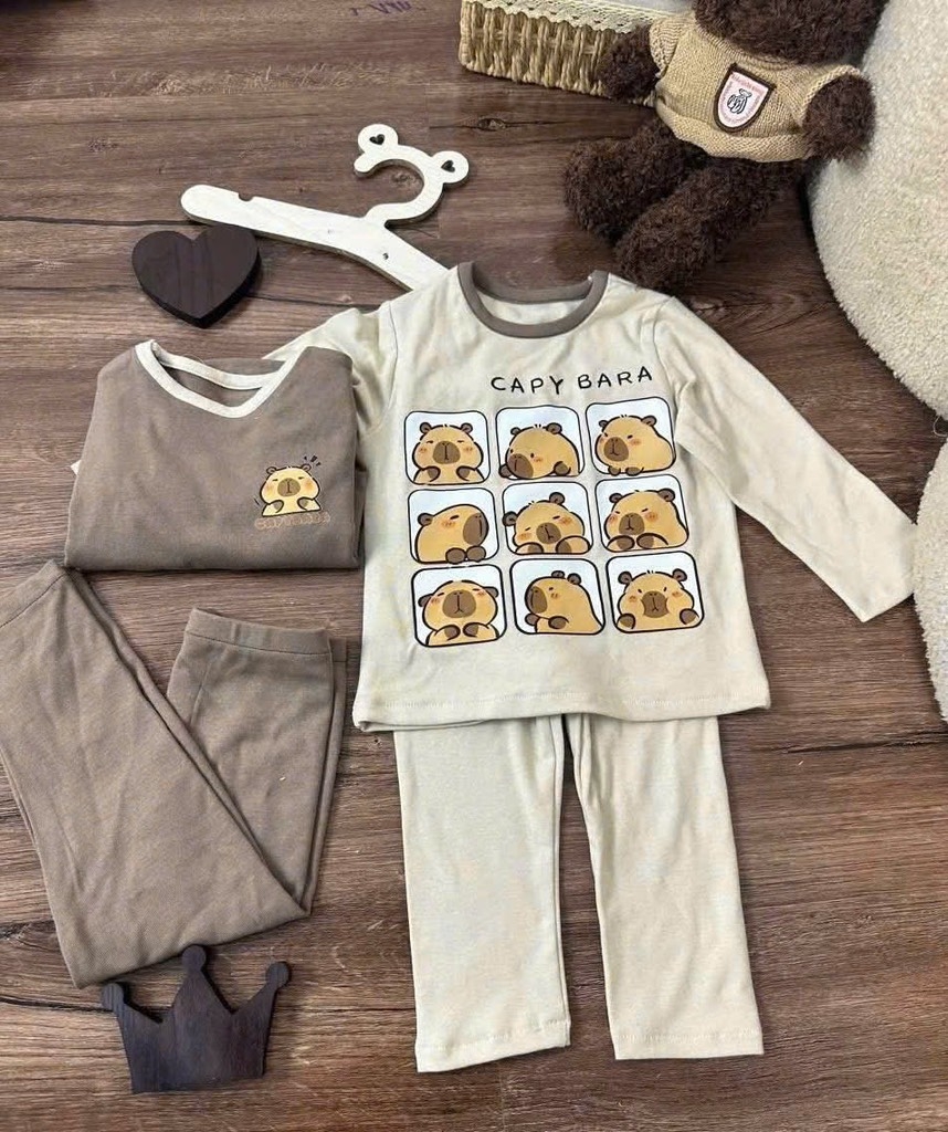 Dư ít cotton Hàn em lên 2 set capy bara vạn em bé mê đây ạ. Chất co giãn tốt mà mềm mịn lắm luôn ạ.