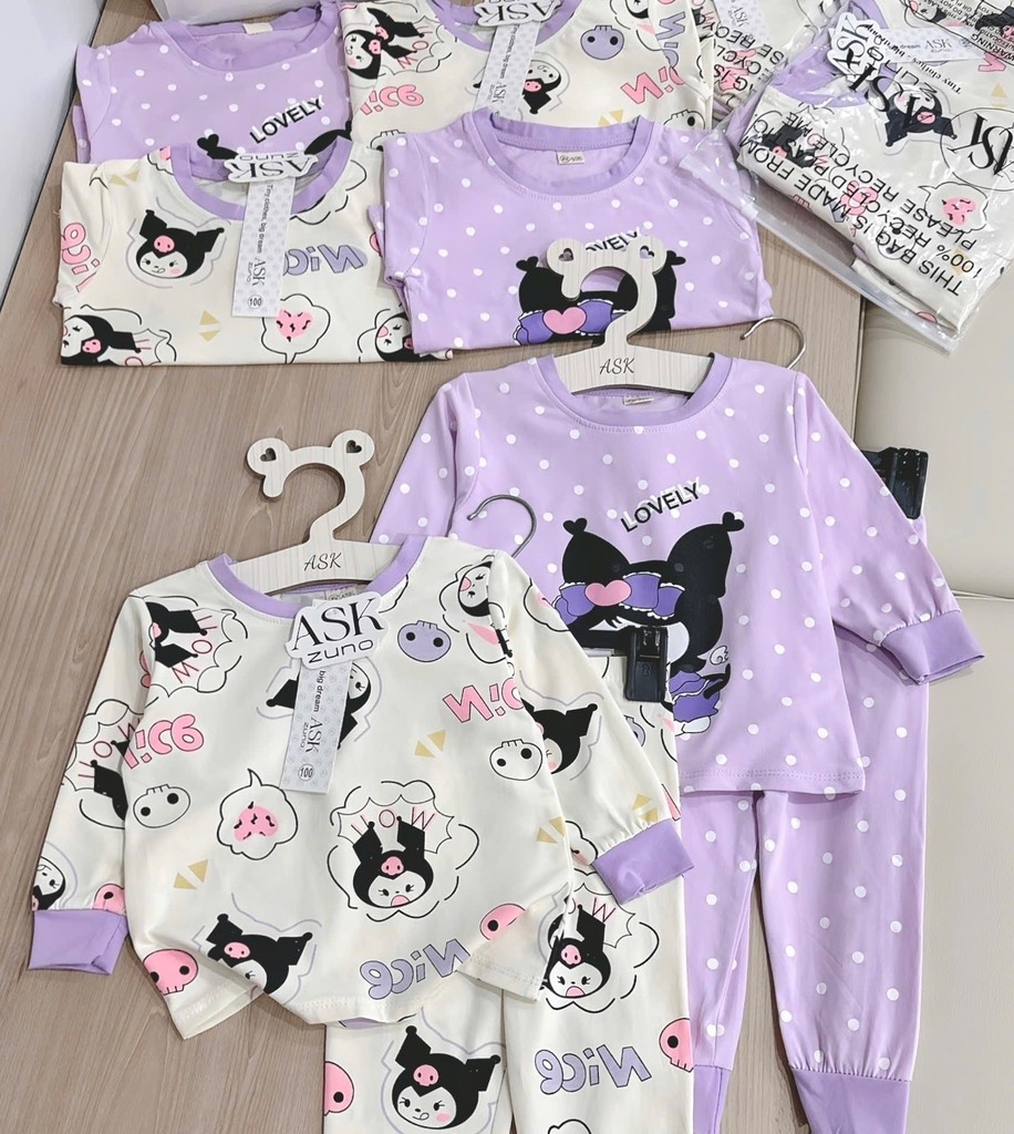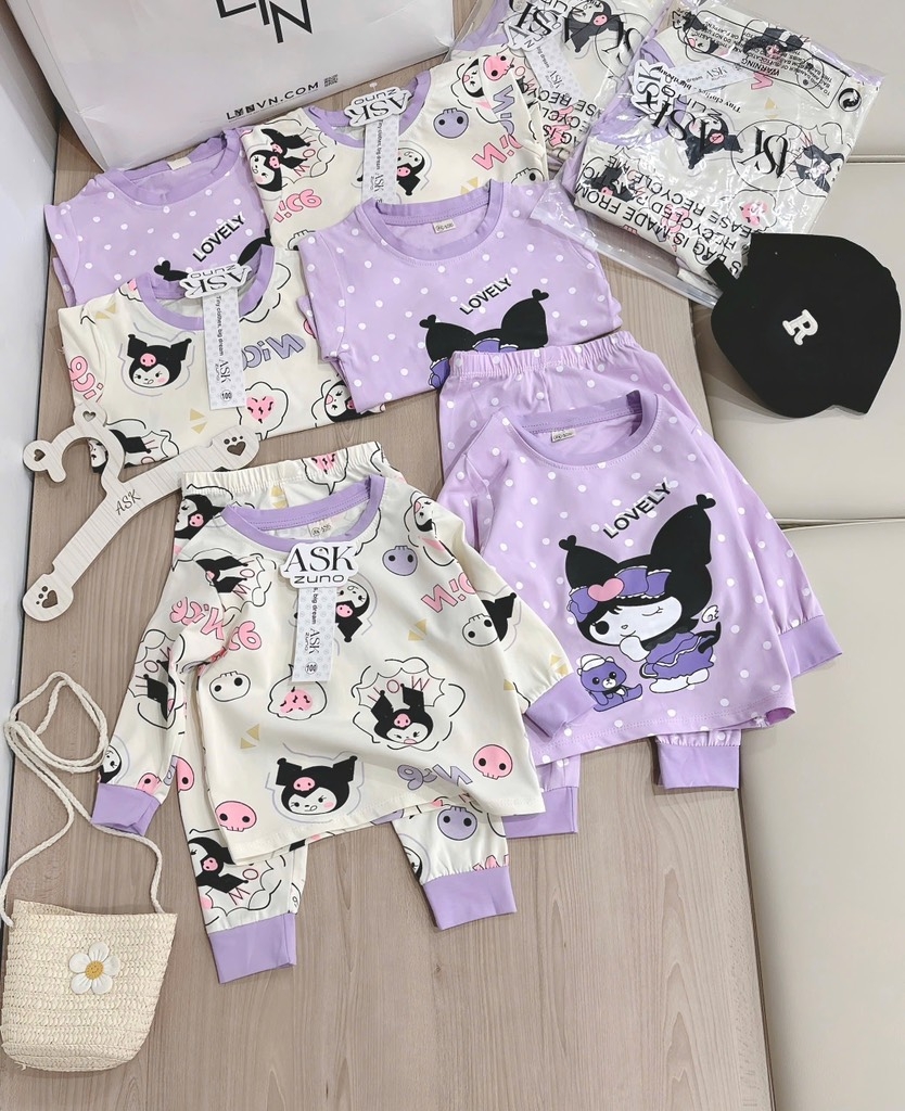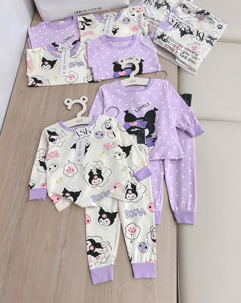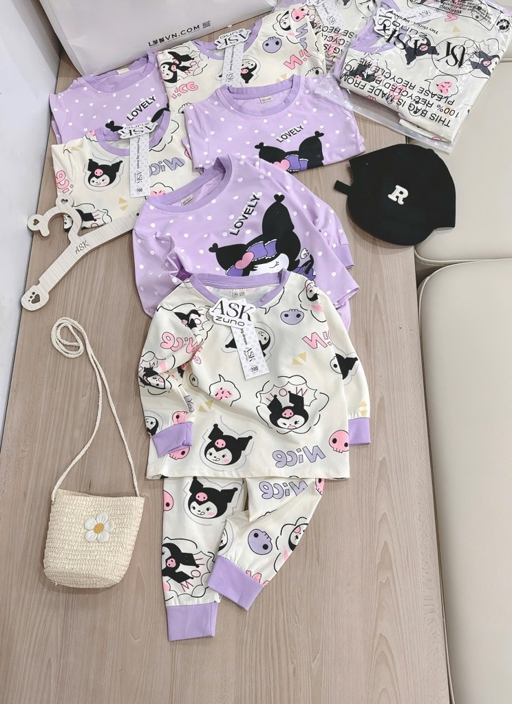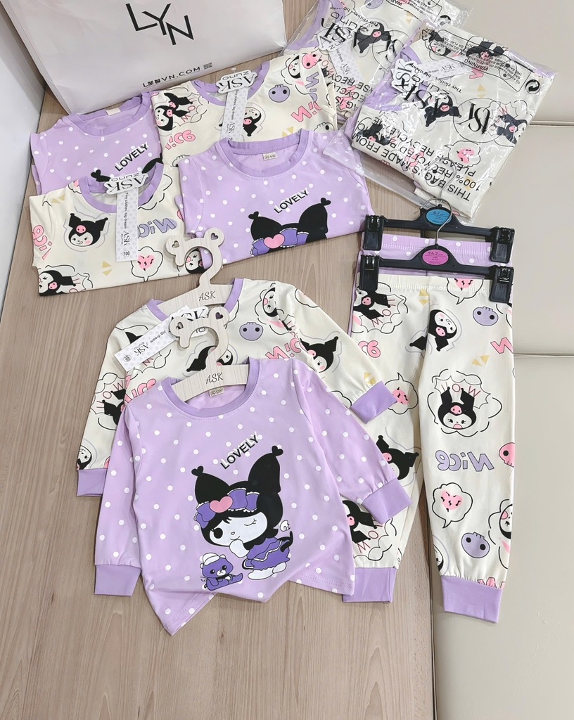 ✨SET 2 BỘ COTTON KURUMI TONE TÍM THU ĐÔNG – MẪU SIÊU CƯNG CHO CÁC BÉ CUTE 😍