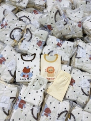 🐻 Set 2 bộ tone vàng nhạt xinh xỉu cho bé yêu, mặc ở nhà hay đi chơi đều cưng 🥰 bé trai - gái mặc đc hết ạ