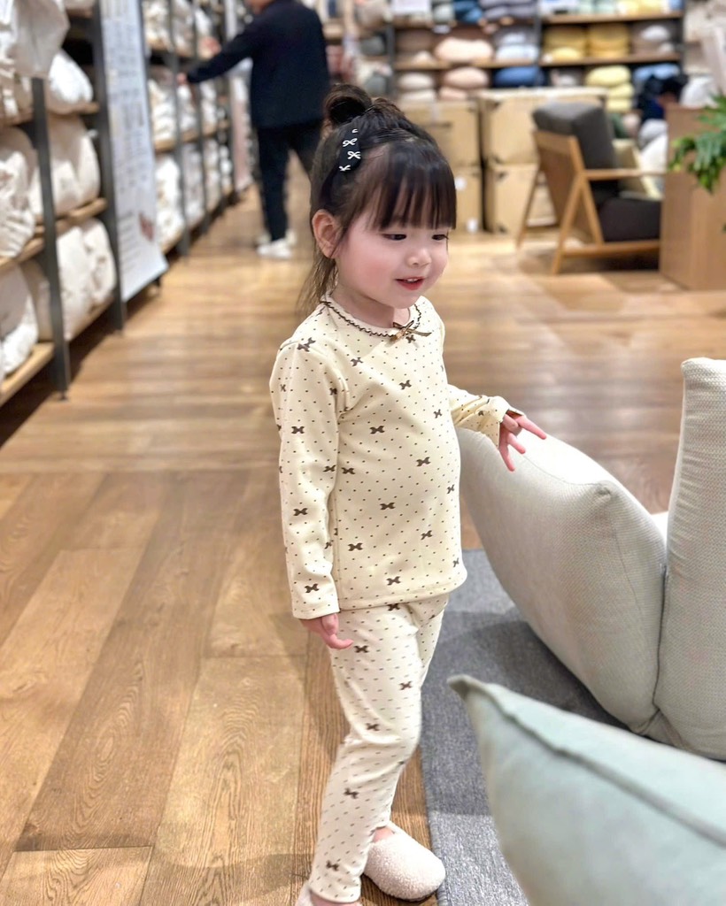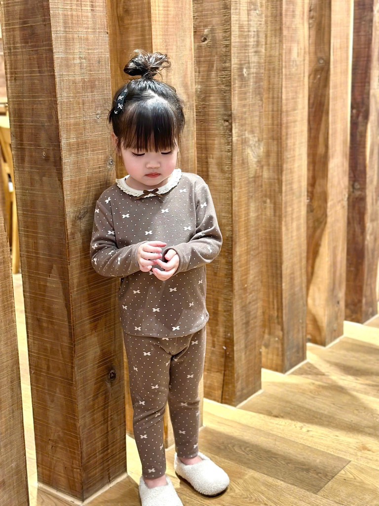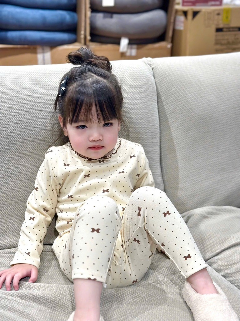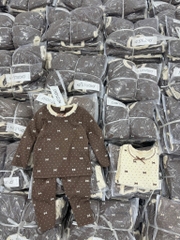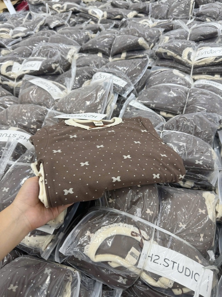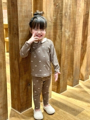 ❗ ❗ HOT KIDS : SÉT 2 BỘ ZIP LÔNG GIỮ NHIỆT HOẠ TIẾT NƠ CHẤM BI CỔ REN NÂU BE CHO BÉ GÁI
