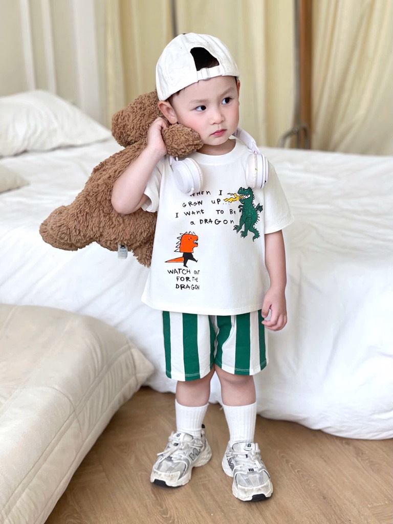 ❗ ❗HOT KIDS : SET 2B CỘC TAY KHỦNG LONG TONE VÀNG XANH CHO BÉ TRAI