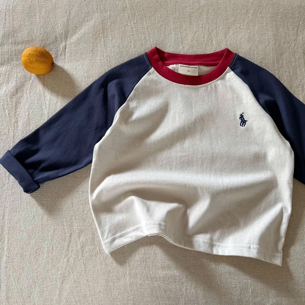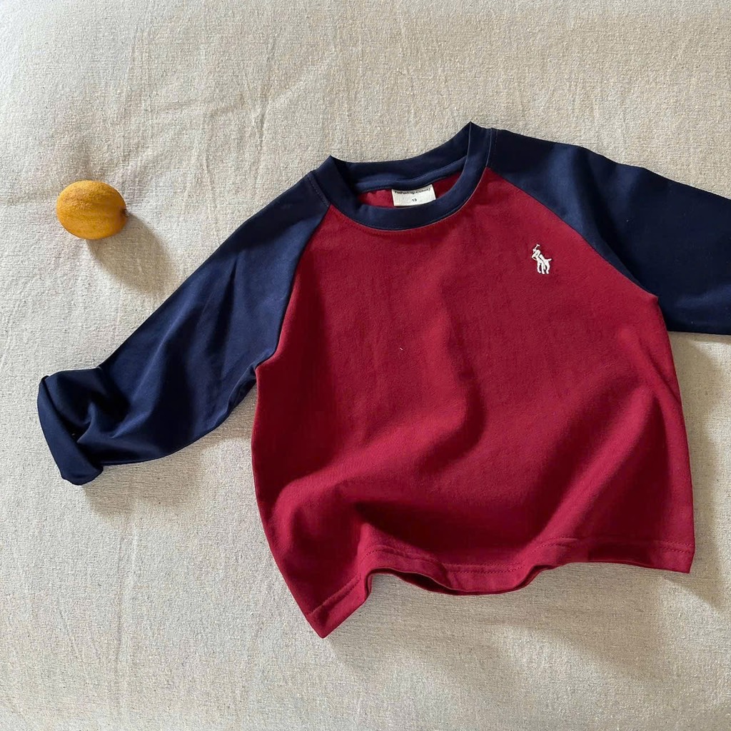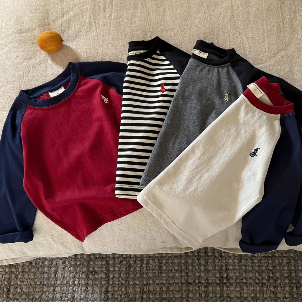 🍁 Set 4 áo raglan dài bé trai – Hình ngựa thêu túi trước