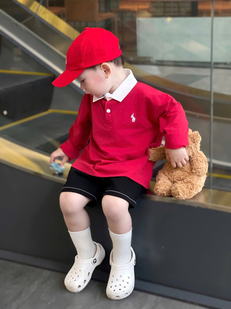 Chất áo cotton mềm mịn, thoải mái, buổi tối các con đi chơi là mặc được rồi đó ạ