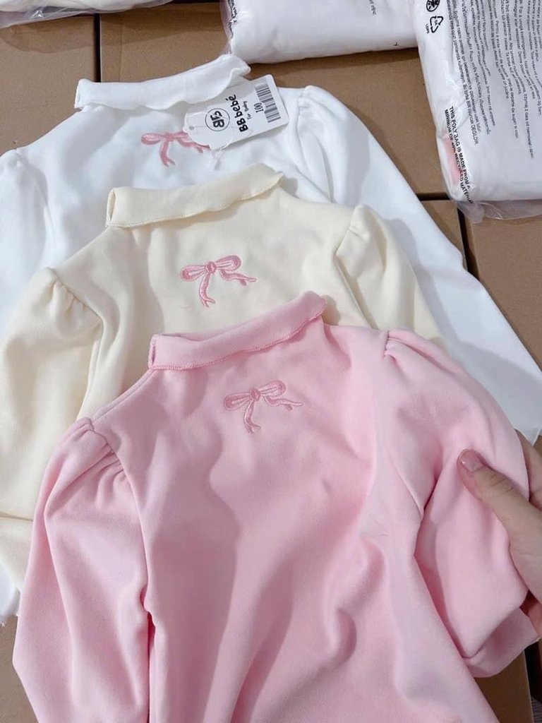 SET 3 ÁO THÊU NƠ BÉ GÁI