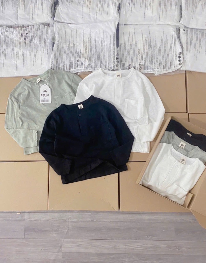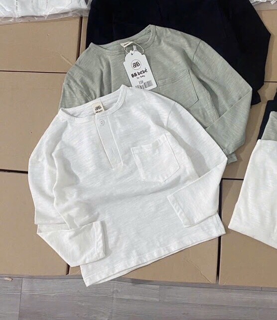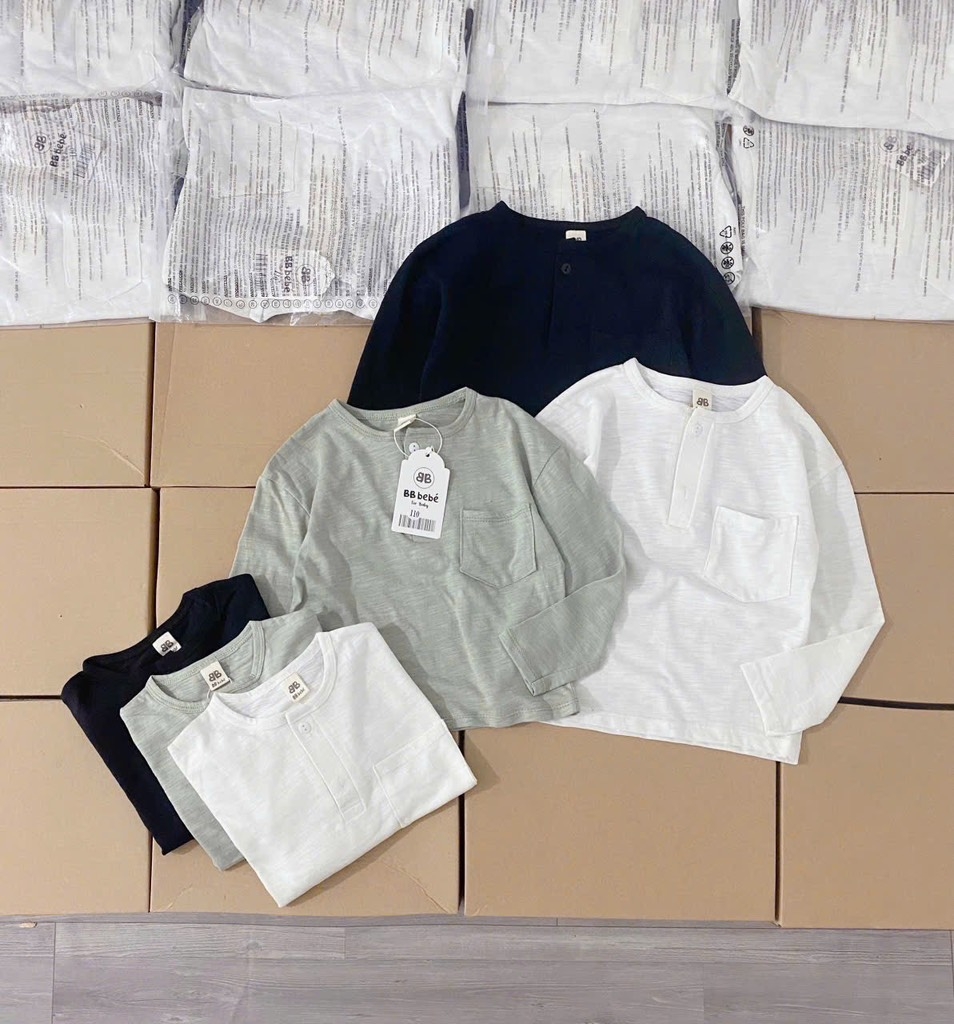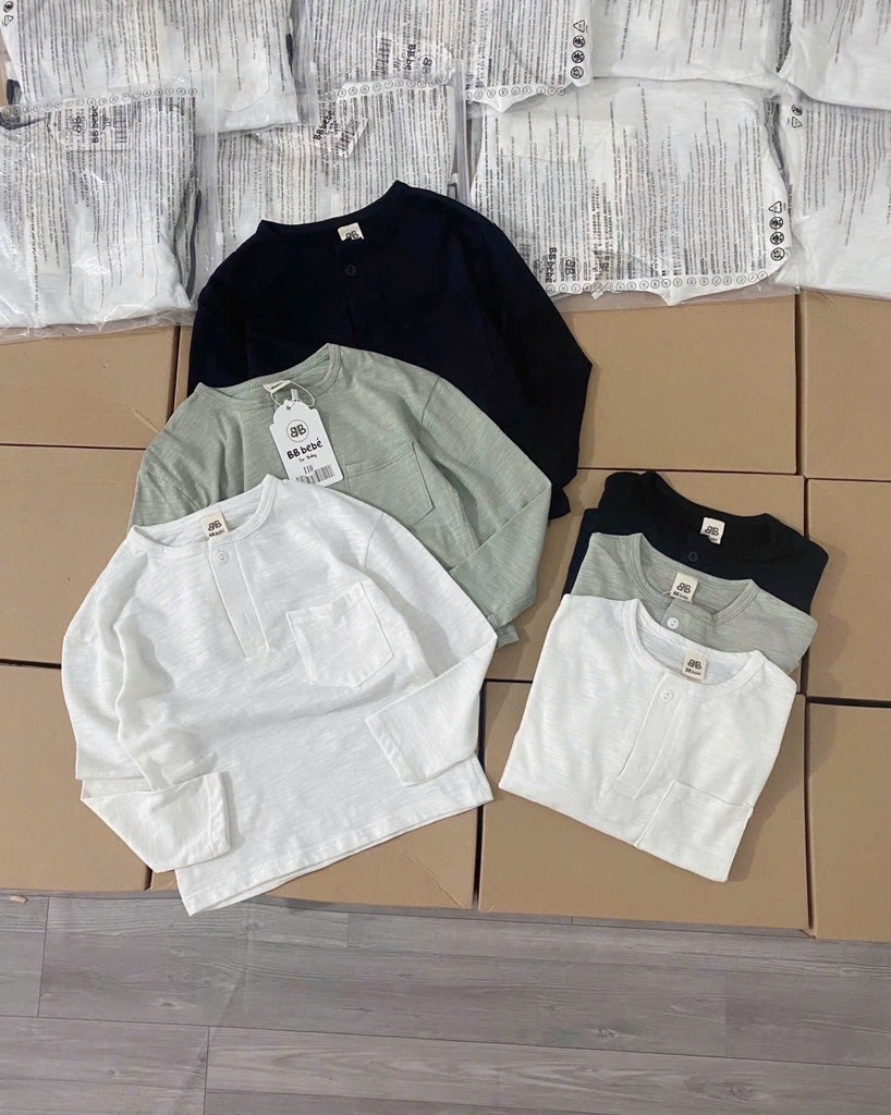 SET 3 ÁO XƯỚC CỔ TRỤ TÚI TRƯỚC DÀI TAY BÉ TRAI
