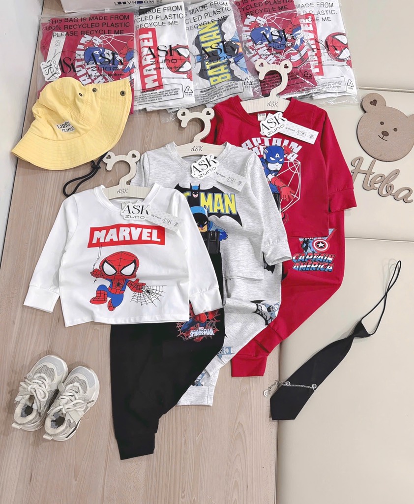 ✨ SET 3 Bộ đồ bé trai dài tay SPIDERMAN BATMAN BÉ TRAI ✨