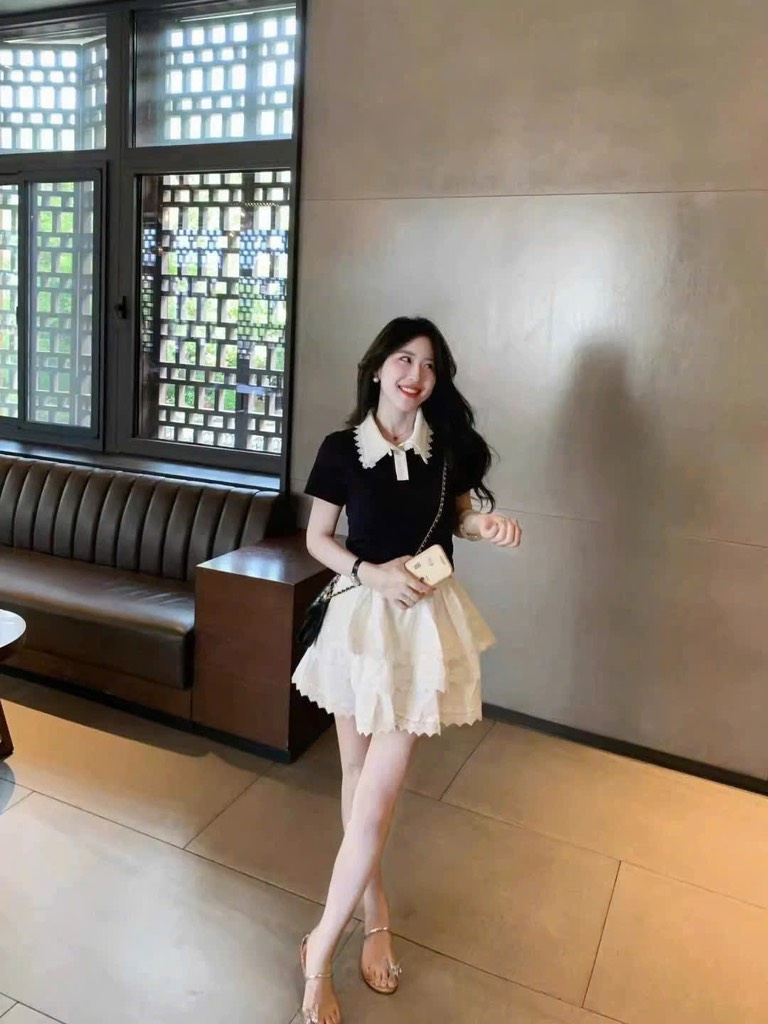 ✨ Mix kèm chân váy tầng ren trắng bồng bềnh, cực tôn da và hack tuổi