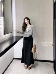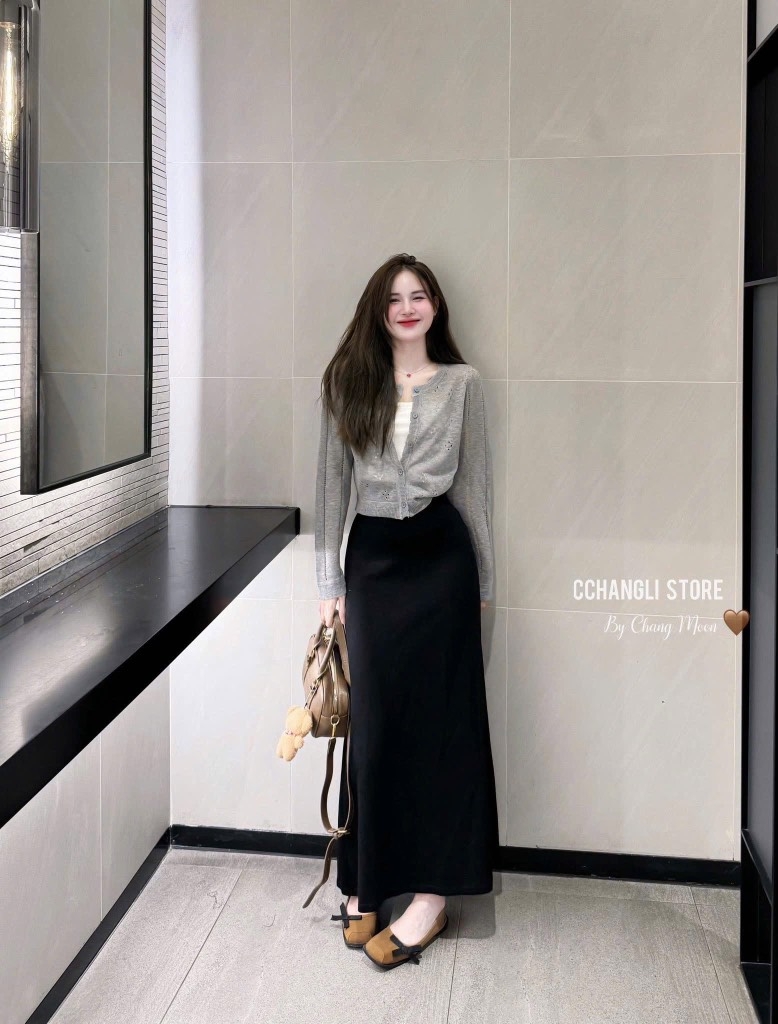 Mix cùng áo 2 dây và chân váy zip dáng dài – lên outfit sang, tôn dáng mà vẫn cực kỳ nữ tính 🍃