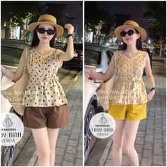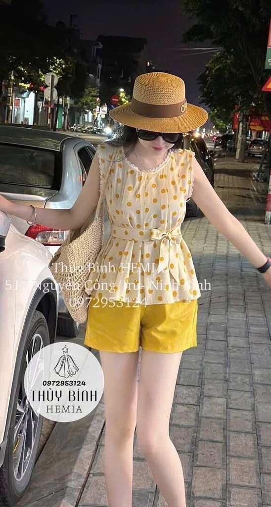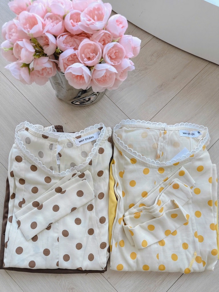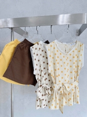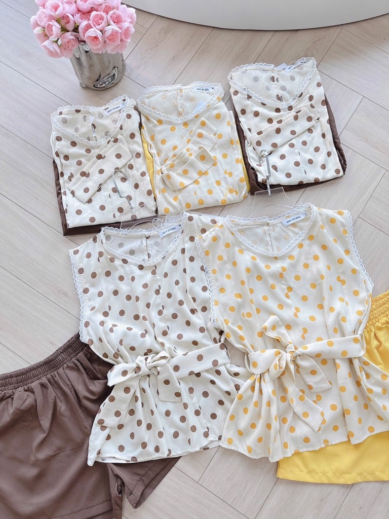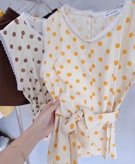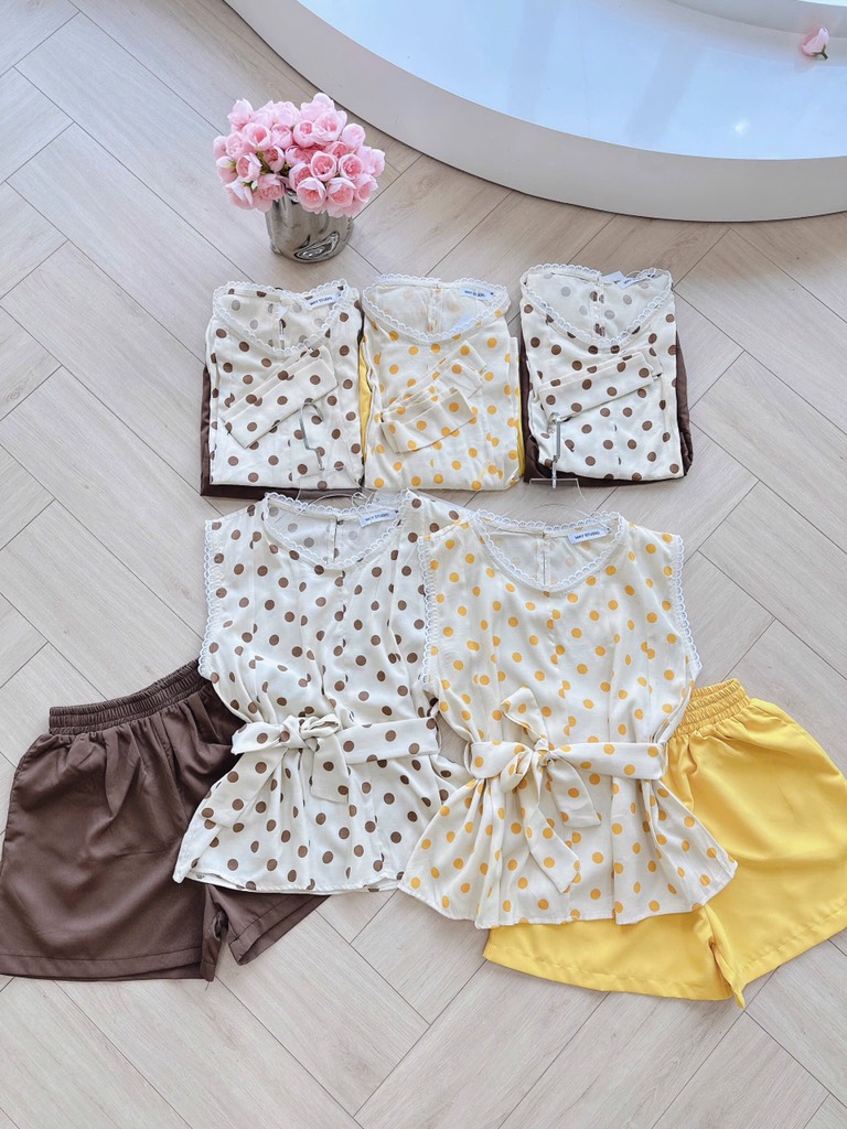 🌿SET ÁO CHẤM BI PHỐI REN KÈM ĐAI THẮT ĐIỆU ĐÀ 🌿