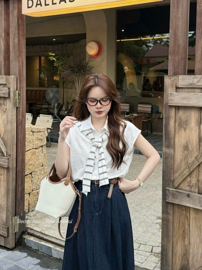 👚 Sơ mi đũi cao cấp mix chân váy jean dáng dài