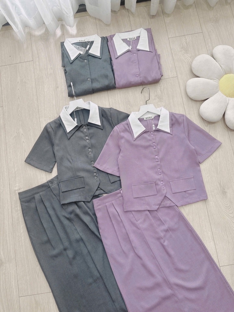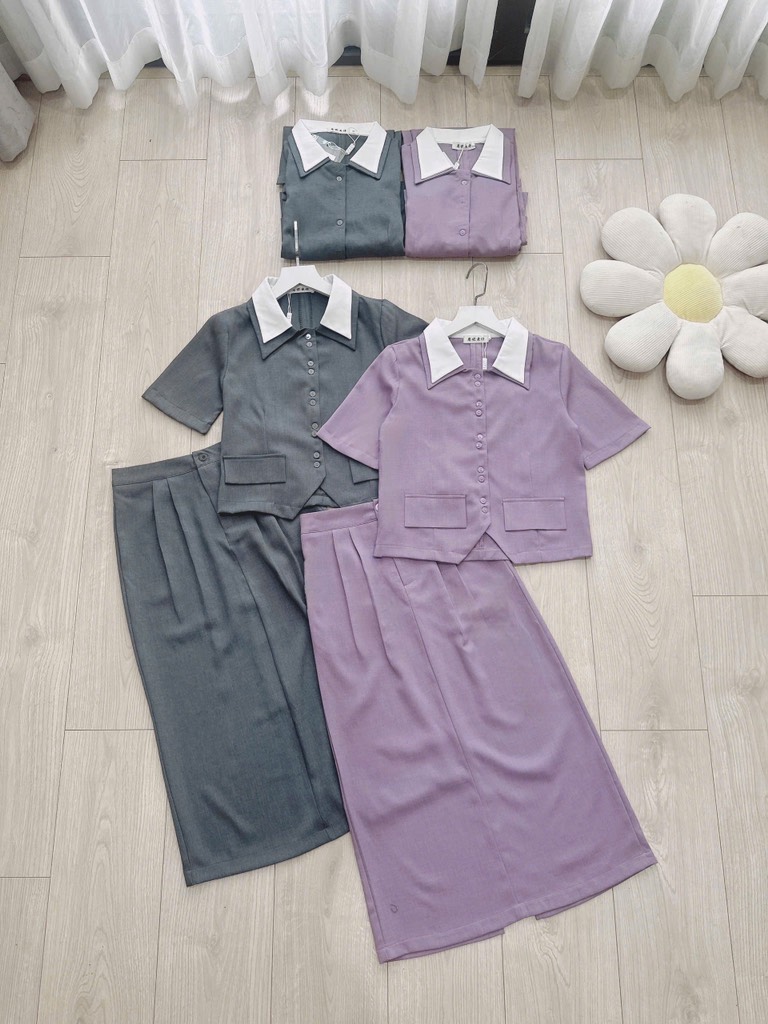 🌺 Thiết kế sang độc đáo , cổ phối 2 lá đặc biệt trẻ trung , chân váy bút chì suông nhẹ , li tạo kiểu kiêu kì !