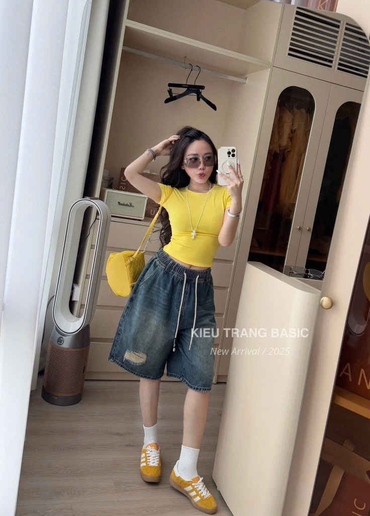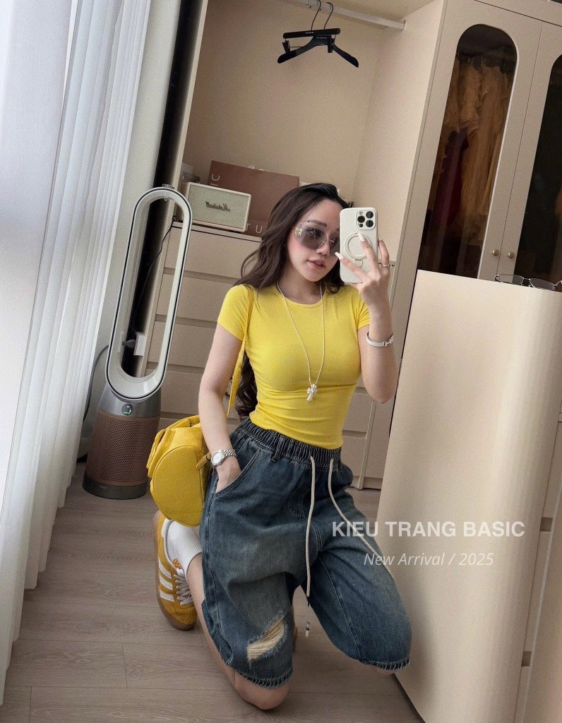 ✔️Áo cotton vàng co giãn cự tốt, bassic dễ mặc