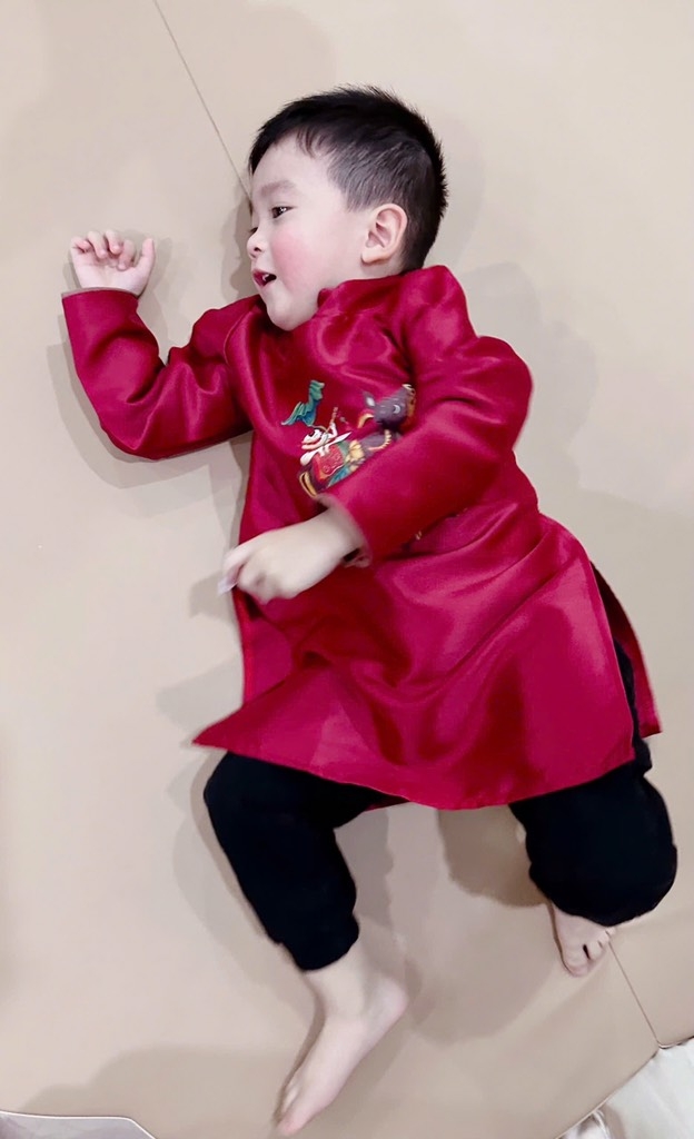 Em lên áo dài em bé xinh quá.