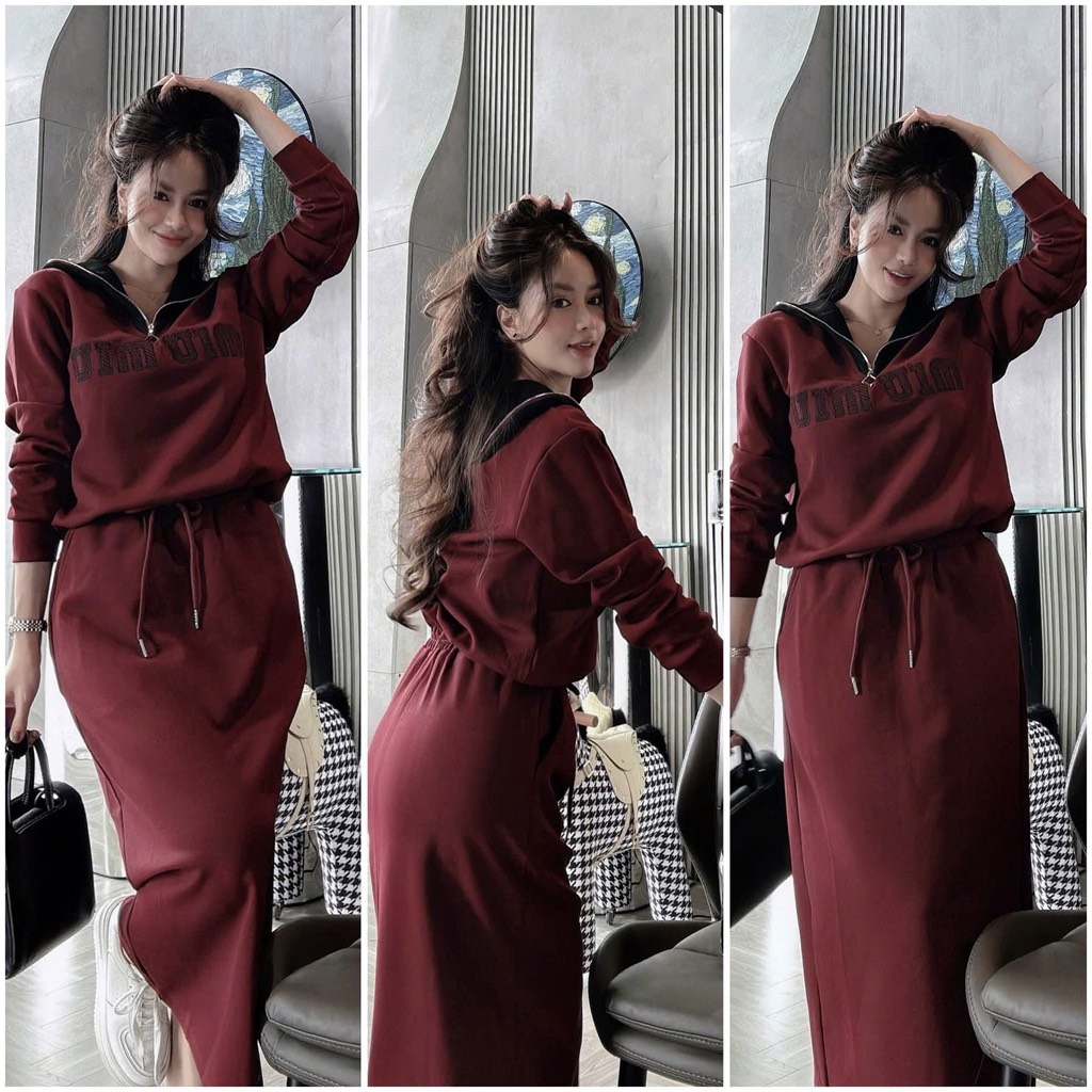 Form váy dài bo dây rút tôn dáng, dễ mặc.