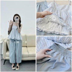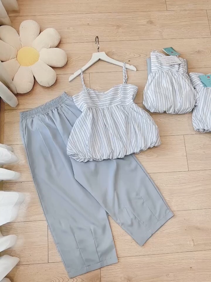 ☘️ SET ÁO KẺ LI-EN BỒNG 2 LỚP CHẠY CHUN 🌺