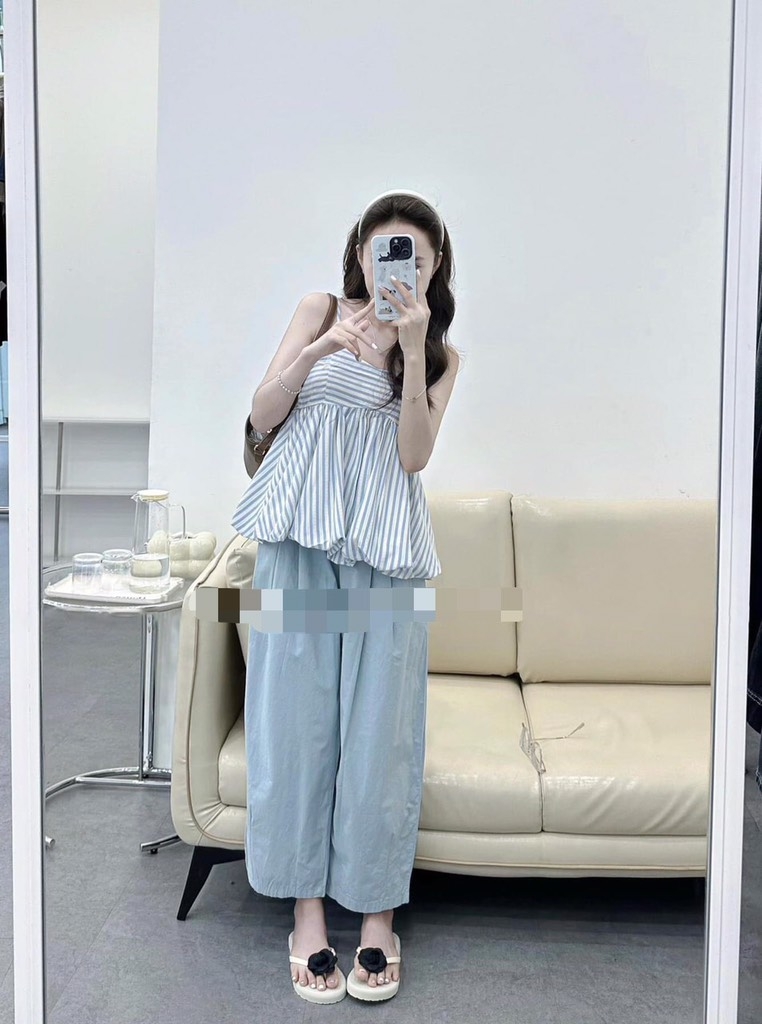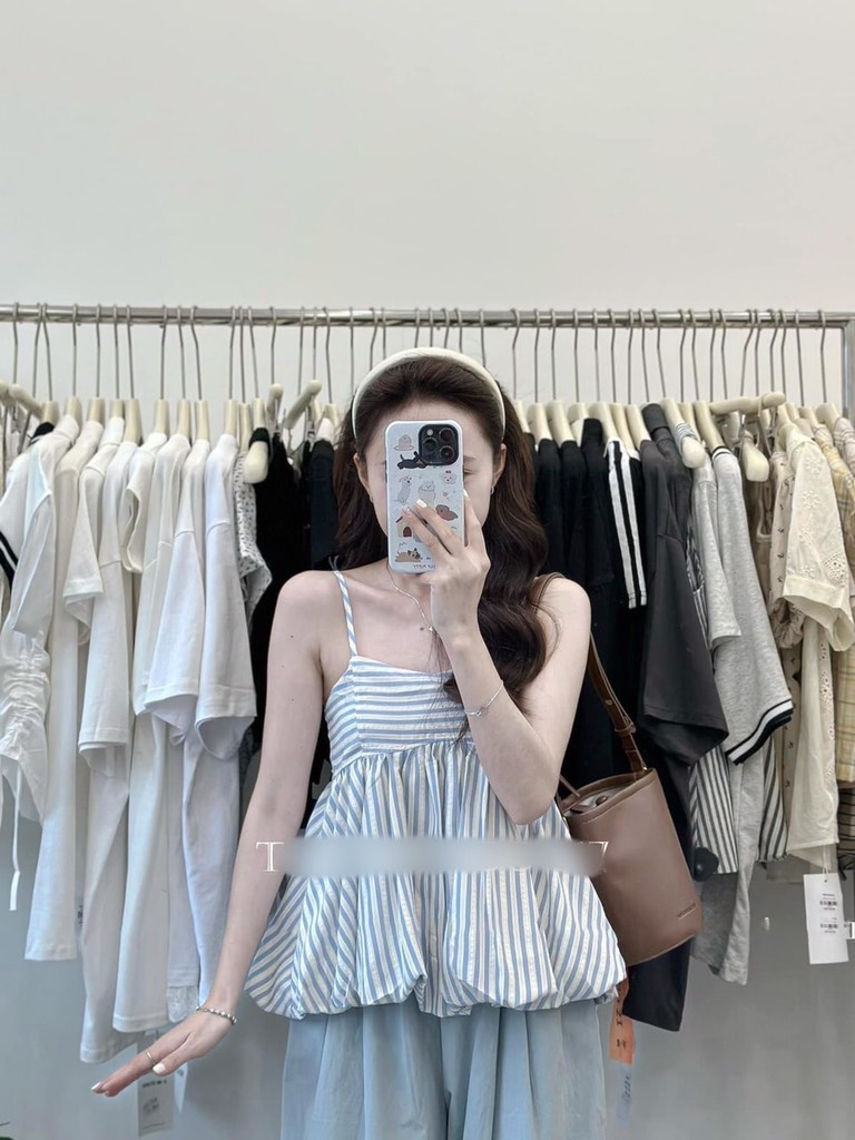 Thiết kế chanh xả , áo dây vai thoáng , chun sau kết hợp bồng gấu tạo kiểu , lên đồ hack tuổi cực kì .