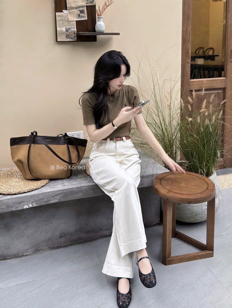 Quần jean mềm 2 màu xanh be siêu dễ mặc.