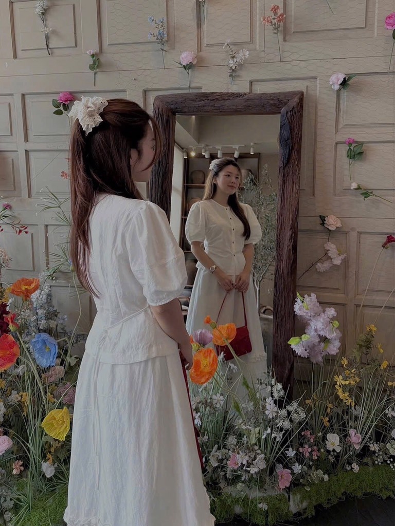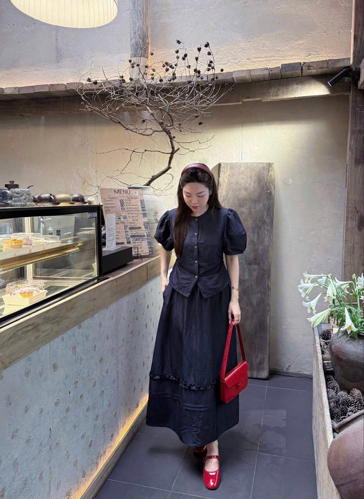 ☘️Dáng Chân váy dài tạo điểm nhấn , thêm chút guốc là hoá cô nàng kiêu sa ngay ạ !