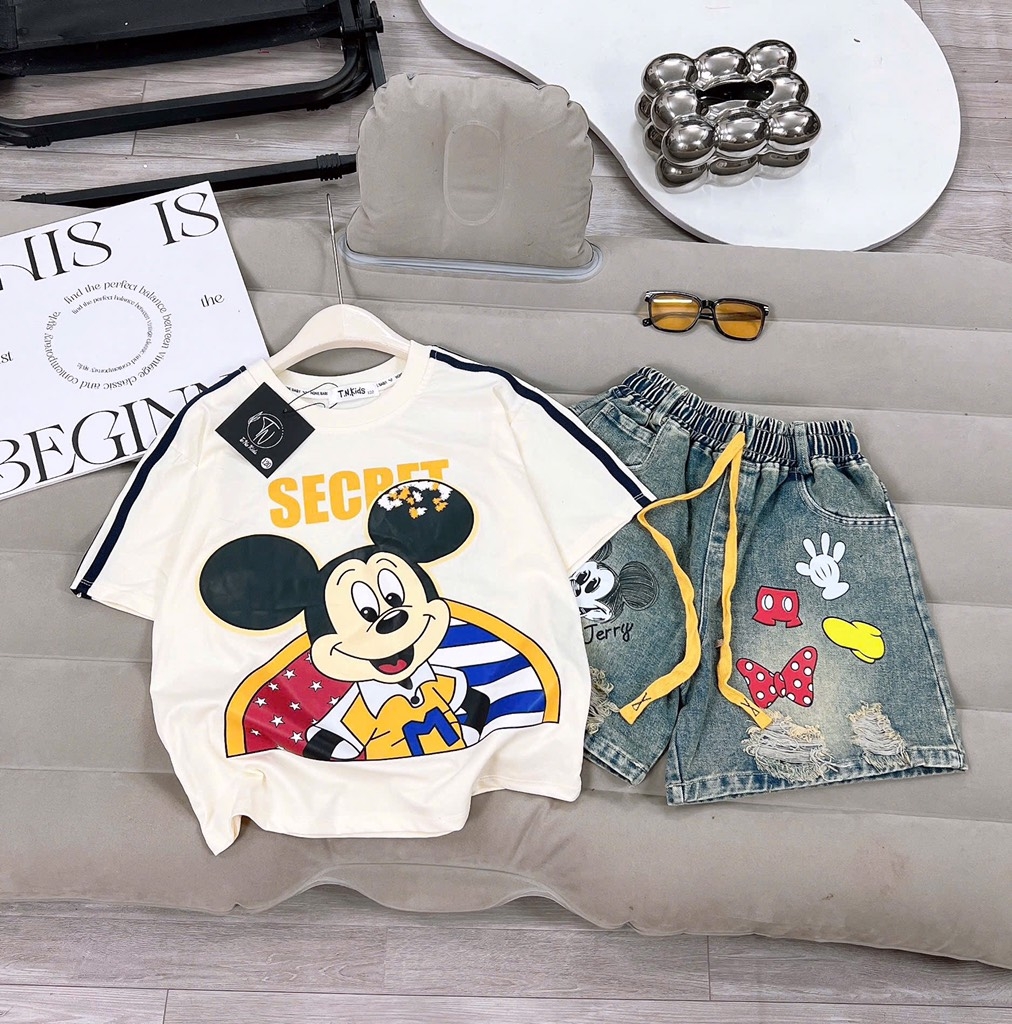 SET ÁO PHÔNG MIX QUẦN SOOC BÒ BÉ GÁI SIZE ĐẠI