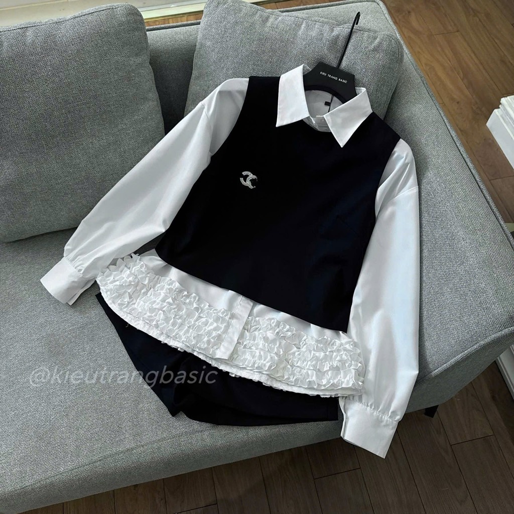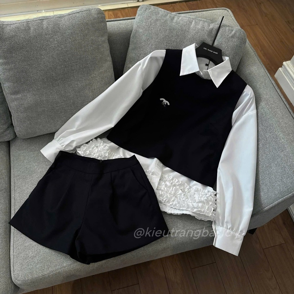 Set áo gile phối sơ mi + quần siêu tây 🖤🤍