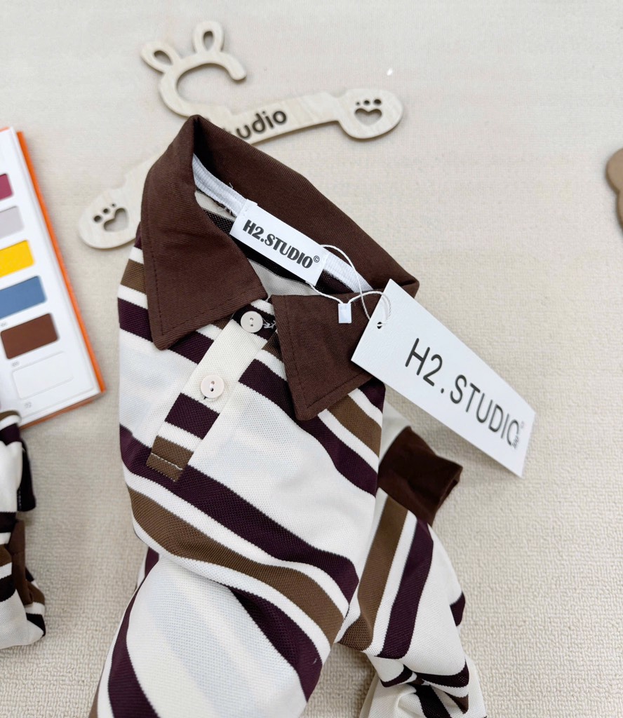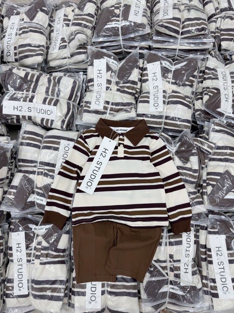 ❗ ❗ HOT KIDS : SET BỘ ÁO DÀI TAY POLO KẺ NÂU QUẦN SUÔNG NÂU CHO BÉ YÊU