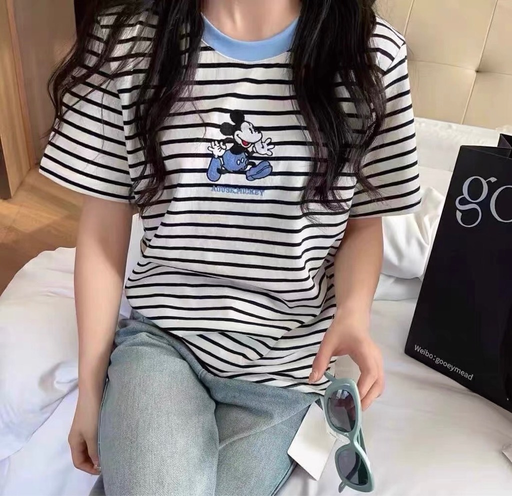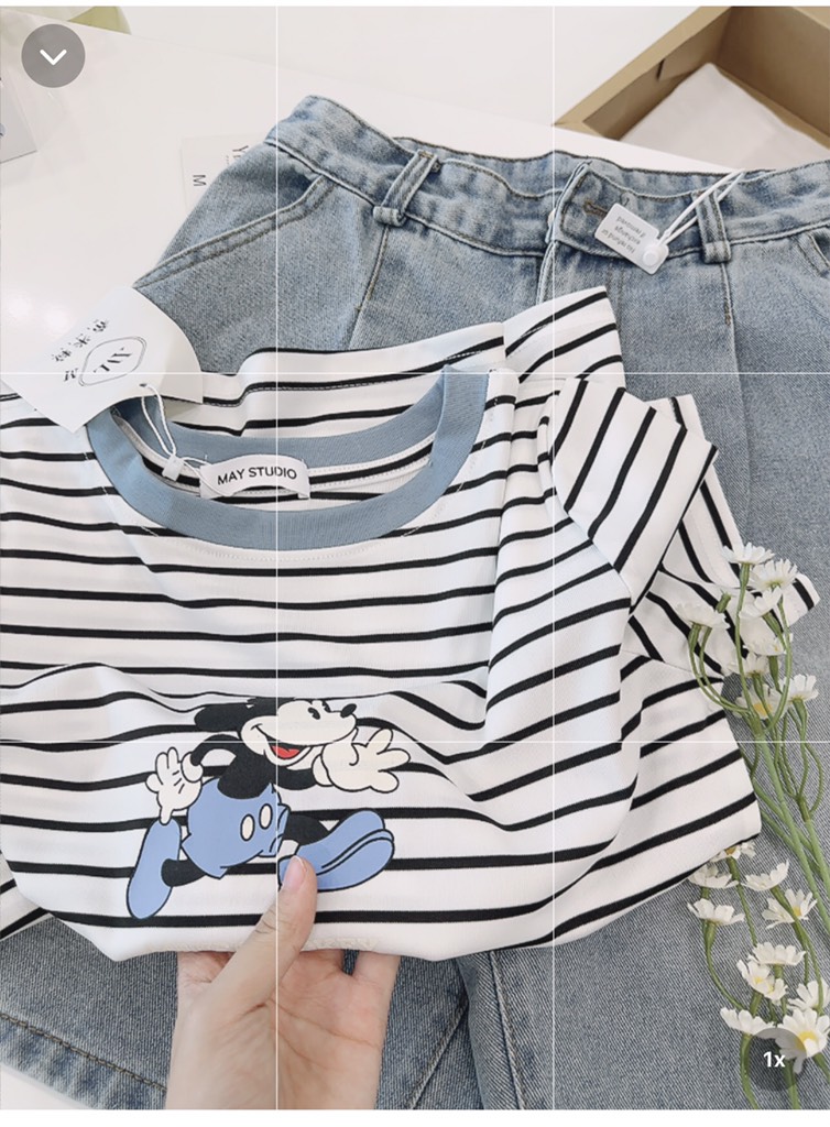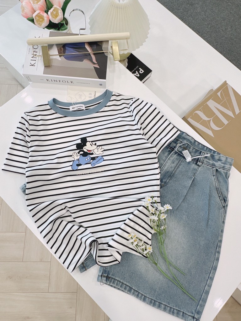 🌷Áo kẻ viền xanh pastel, họa tiết Mickey xinh xắn, chất cotton mềm mịn, mát mẻ.
