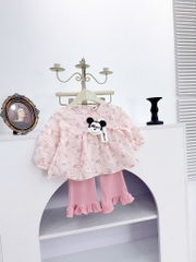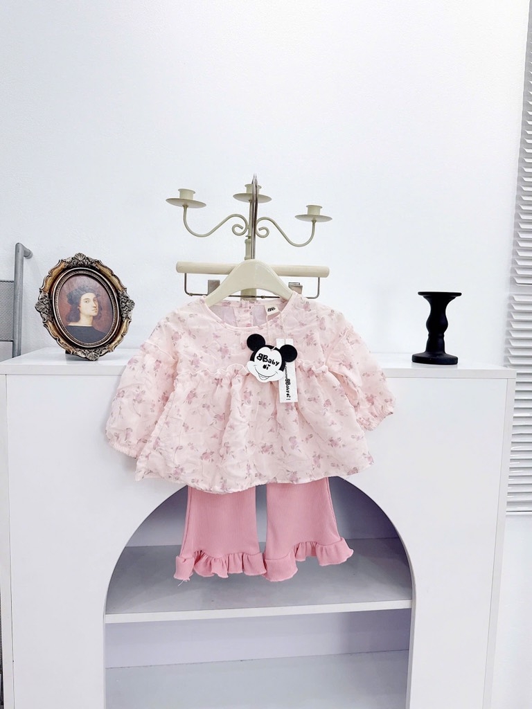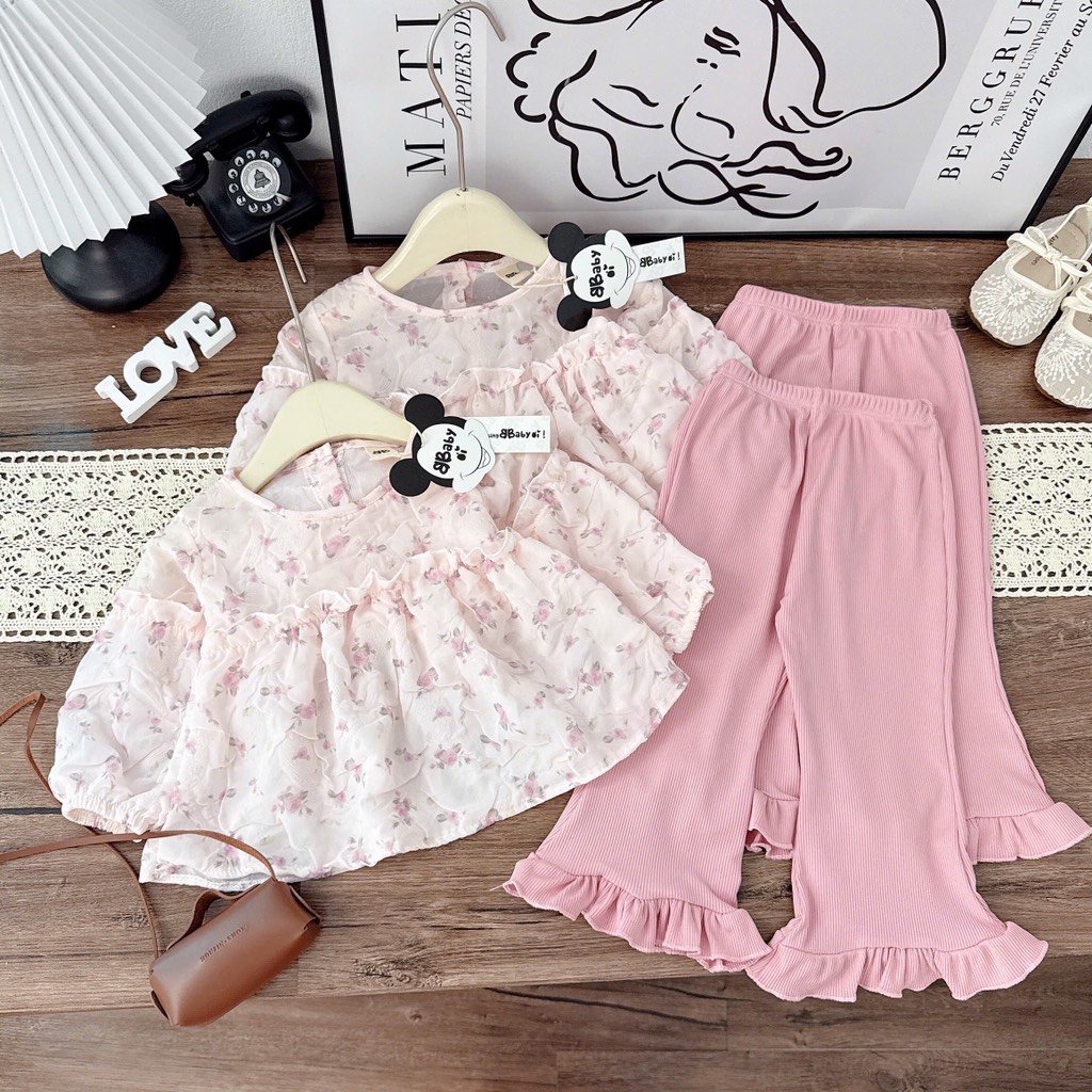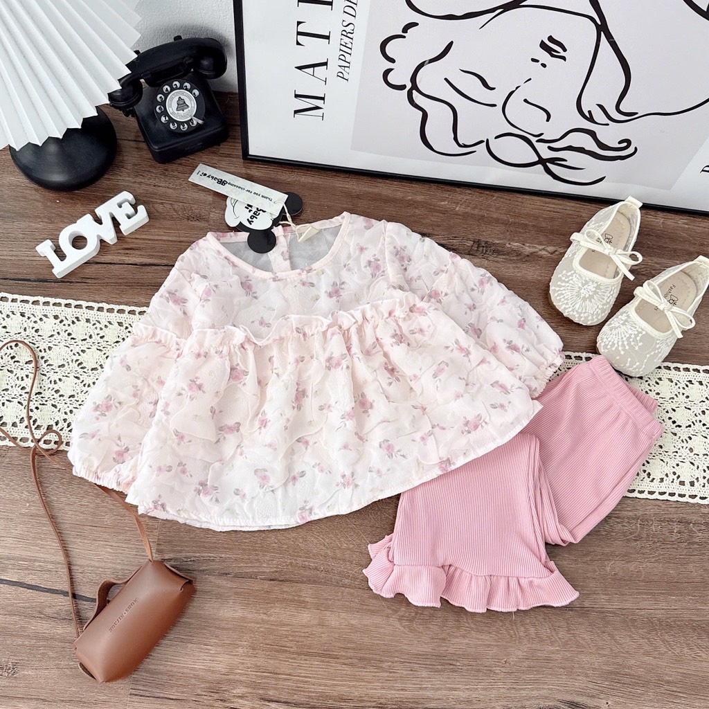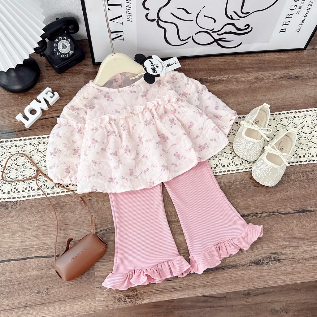 Sét bộ áo hoa xốp nhẹ nhàng xinh iu phối quần tăm loe hồng xinh xỉu