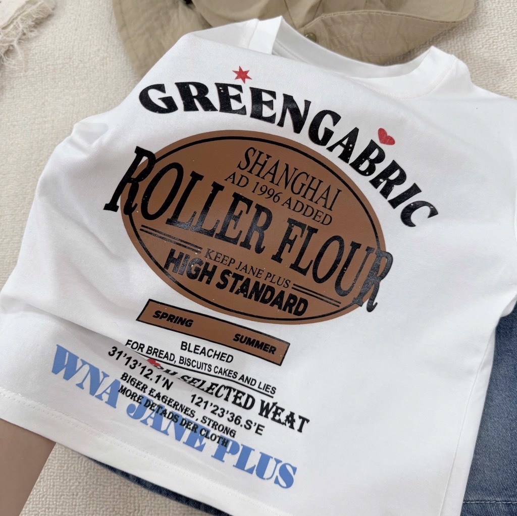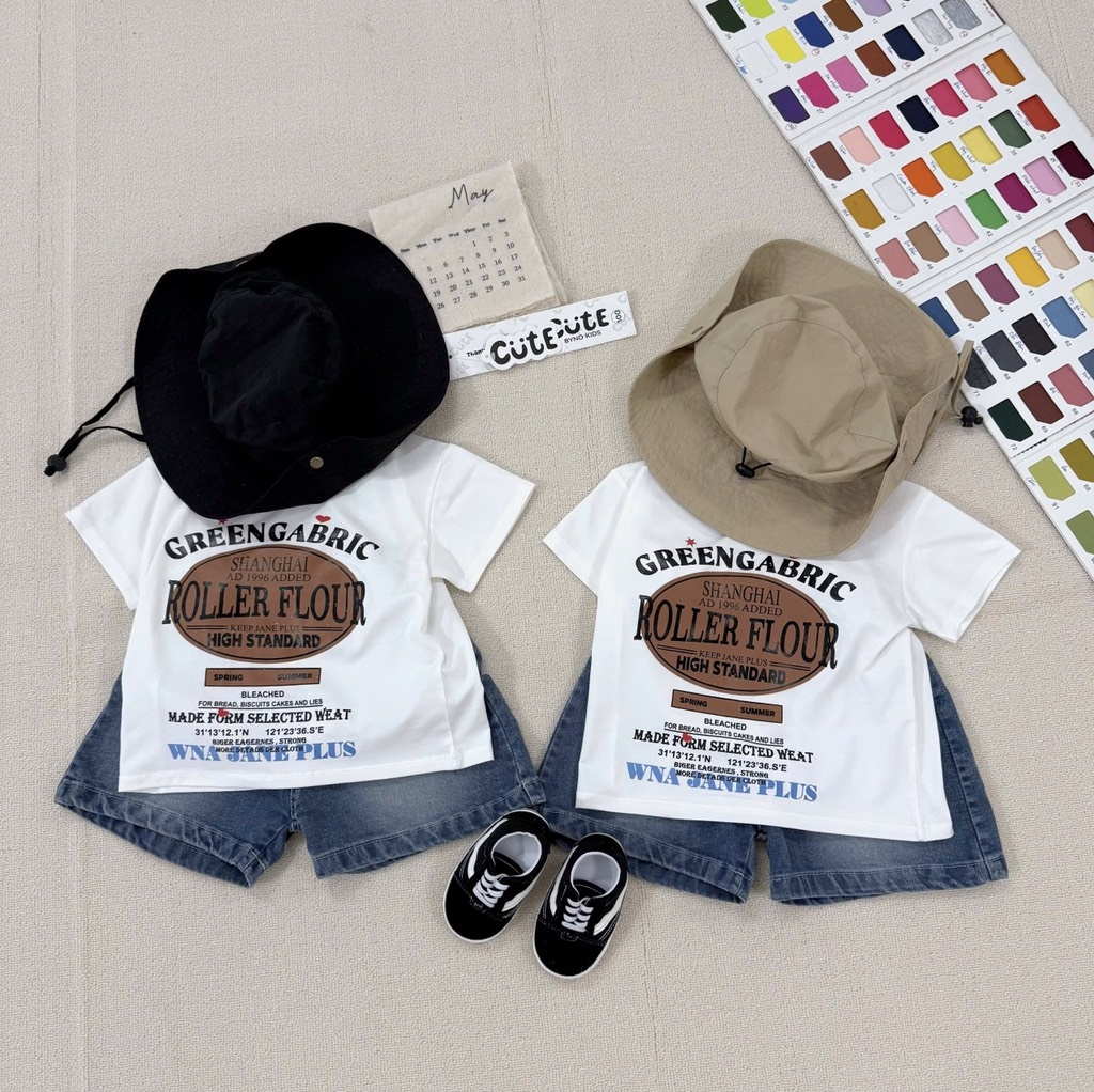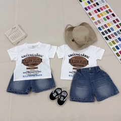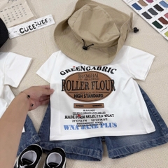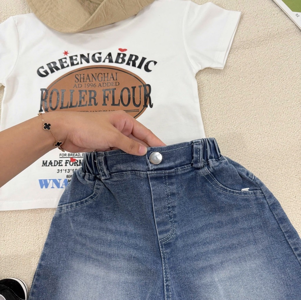 ‼️HOT : SÉT BỘ ÁO PHÔNG KEM ROLLER FLOUR QUẦN SHORT JEAN CHO BÉ NEW SBB891